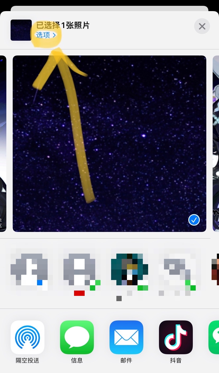 -在该界面找到选项/Option (蓝色的,在界面的左上角,已选择x张照片的下方)