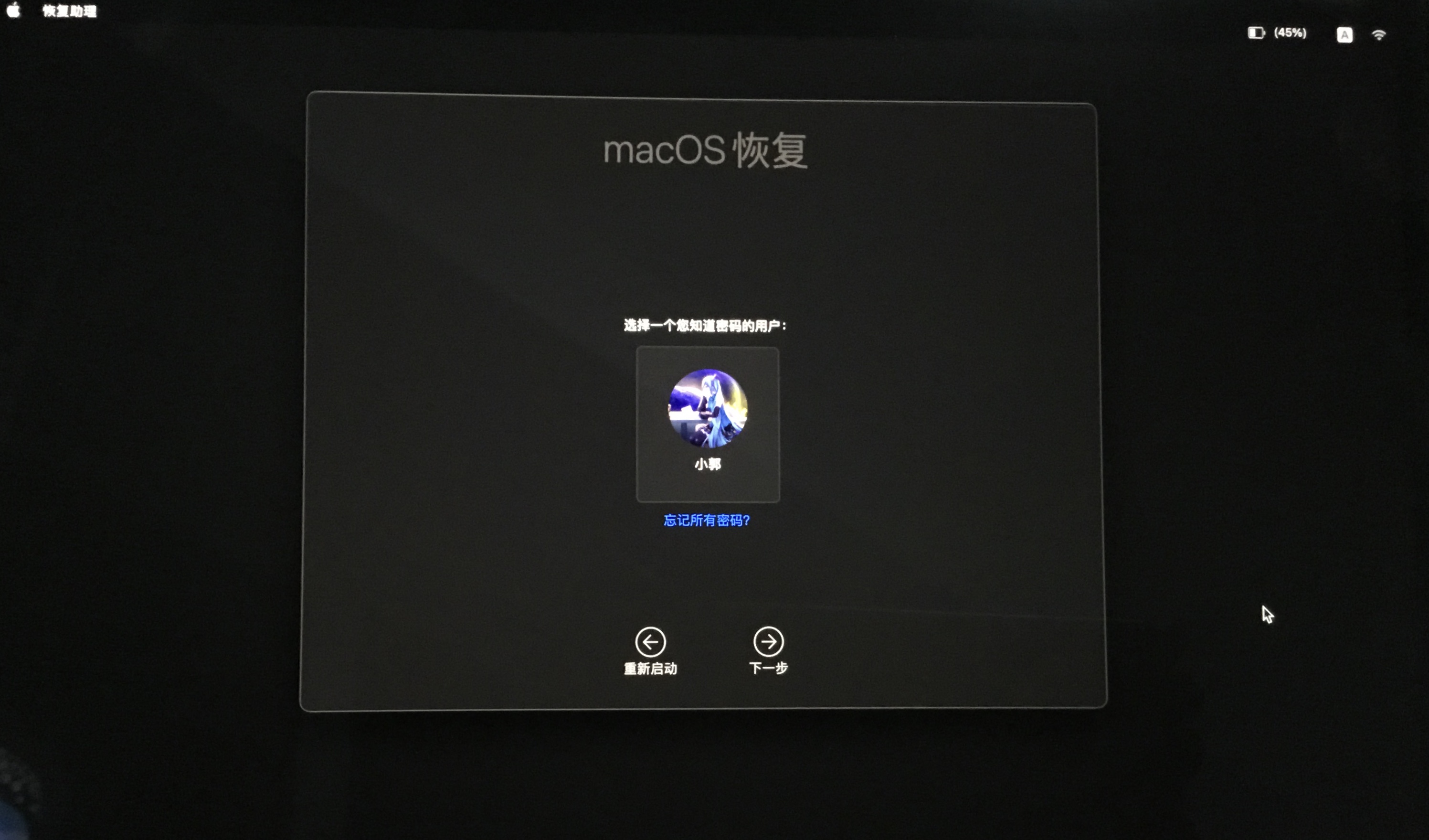 求助,刚买的mac bookpro 13寸的那款,激活的时候没留意用户名密码,现在打不开电脑了;重启后密码才能使用触控id;按网上说的使用command+r并没有进入osx工具页面。