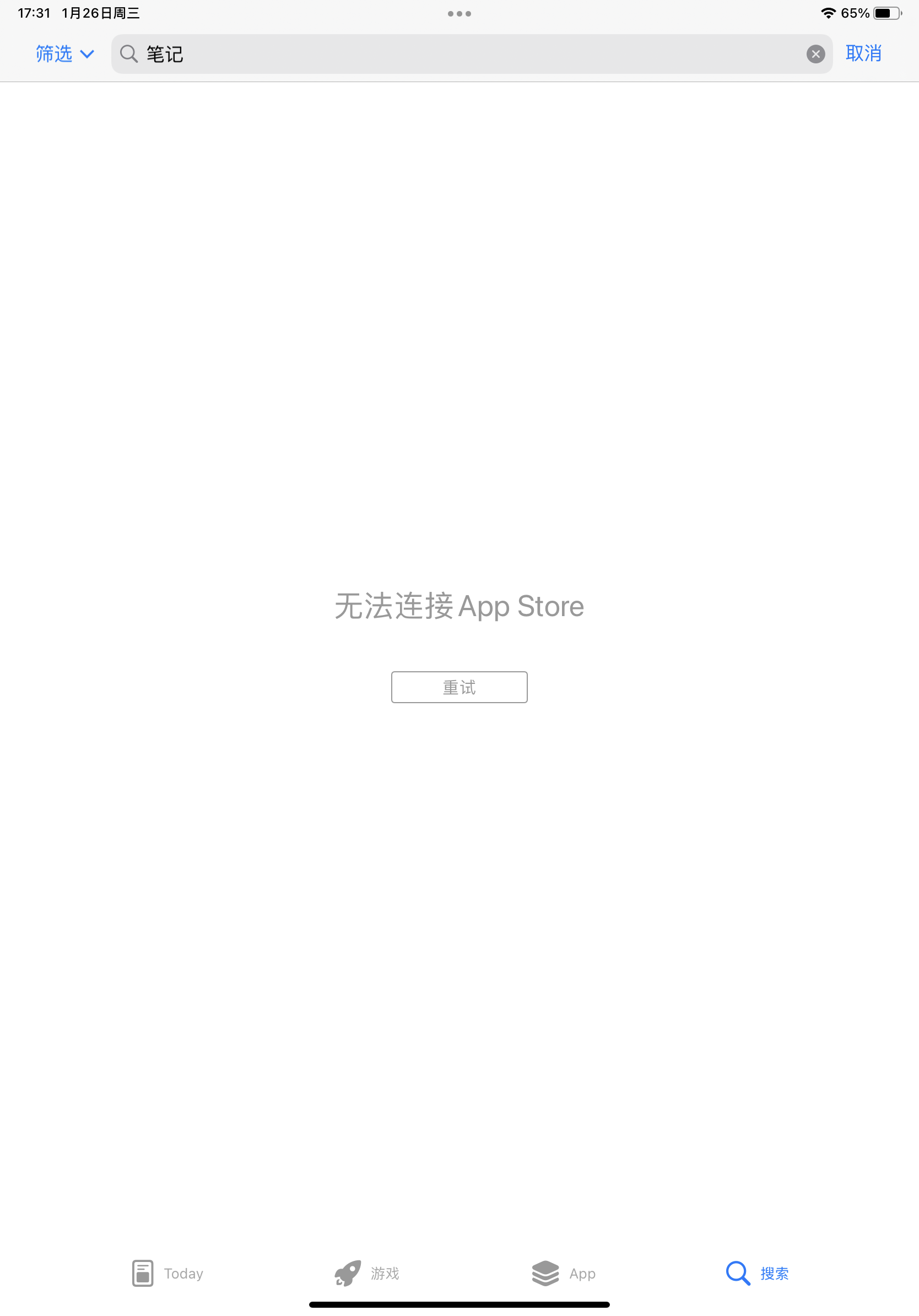 appstore搜索时note等关键词时出现无法连接appstore提示