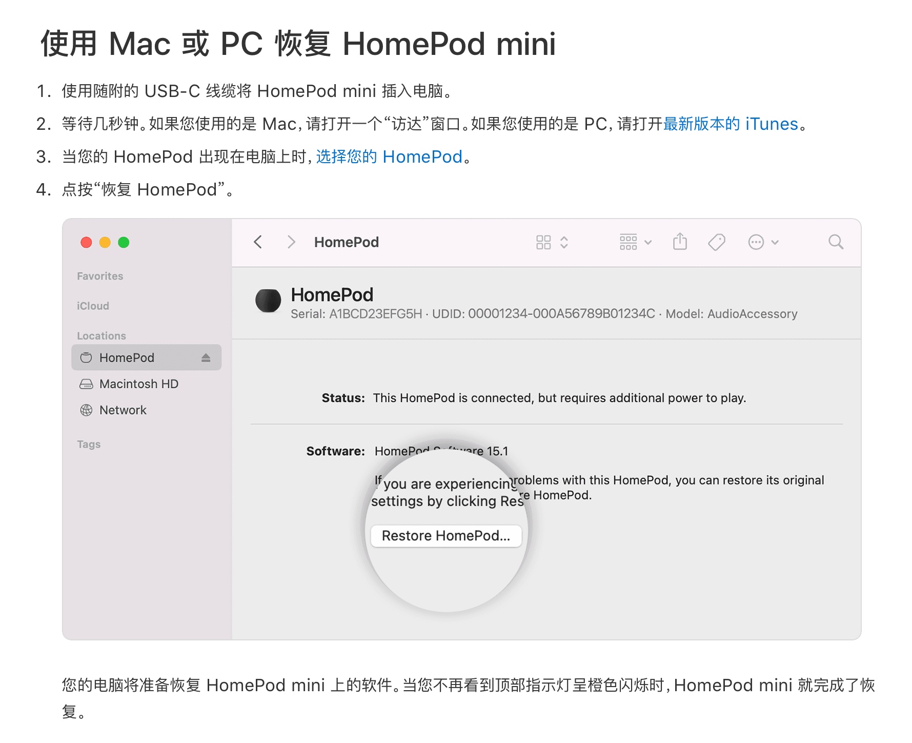 你们有没有这种情况,在家庭app以还原HomePod mini,轻点了移除配件,但HomePod mini没动静将手指按住顶部依然是Siri,拔电源再插上也没效果,第二天早上又重式一遍,还是Siri。家庭app已经没有HomePod mini了。(希望我家帮助一下,谢谢🙏)