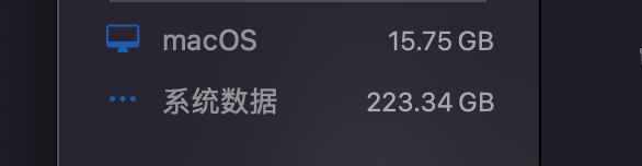 系统macOS Monterey 12.1 存储空间中“系统数据”223G
