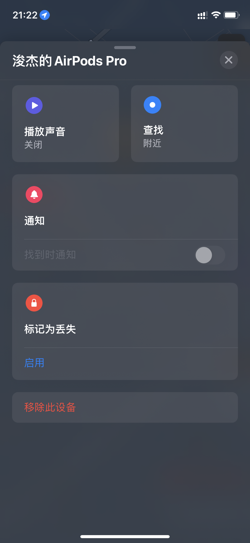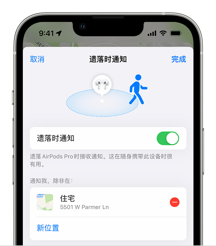 以下用户的用户个人资料: shmily shmily 用户级别: 级别 9 76,469 积分 2022年2月7日 上午7:25 回应 希望你能眼熟我 在遗落 AirPods 时收到提醒您可以设置分离提醒,以免将 AirPods(第 2 代)或更新机型、AirPods Pro 或者 AirPods Max 遗落在未知位置:在 iPhone、iPad 或 iPod touch 上,打开“查找”App。前往“设备”标签,然后选取您的 AirPods。在“通知”下,轻点“遗落时通知”。打开“遗落时通知”。在“查找”App 中设置和使用“遗落时通知” - Apple 支持 (中国)查找丢失的 AirPods - Apple 支持 (中国) 回复 链接