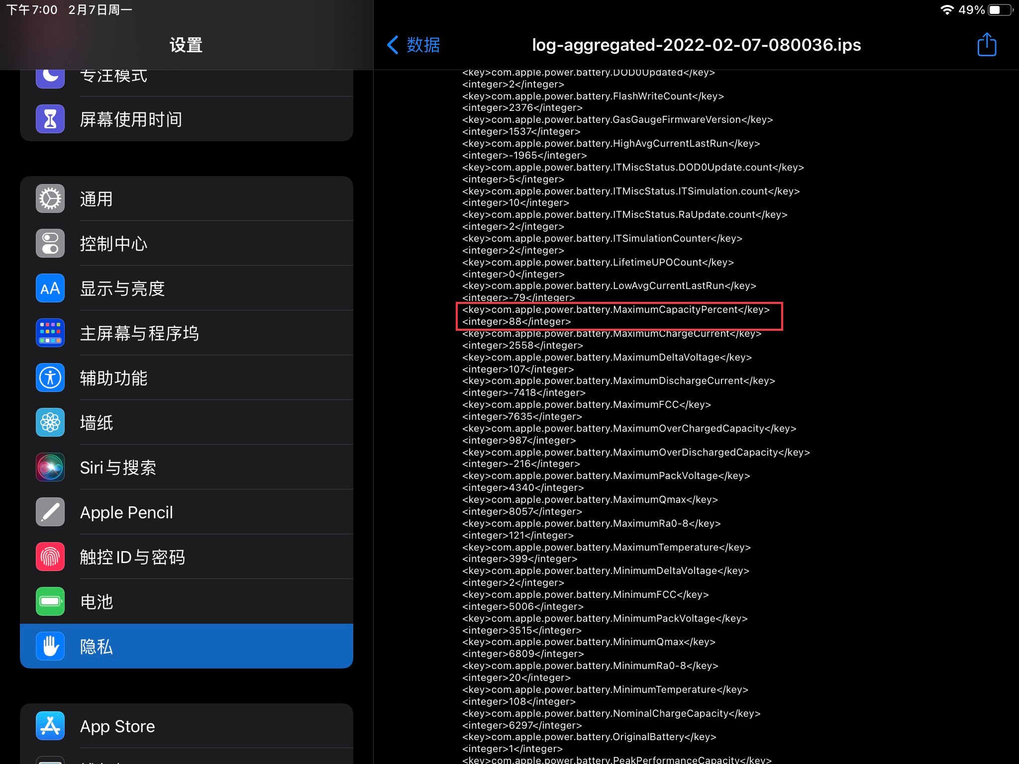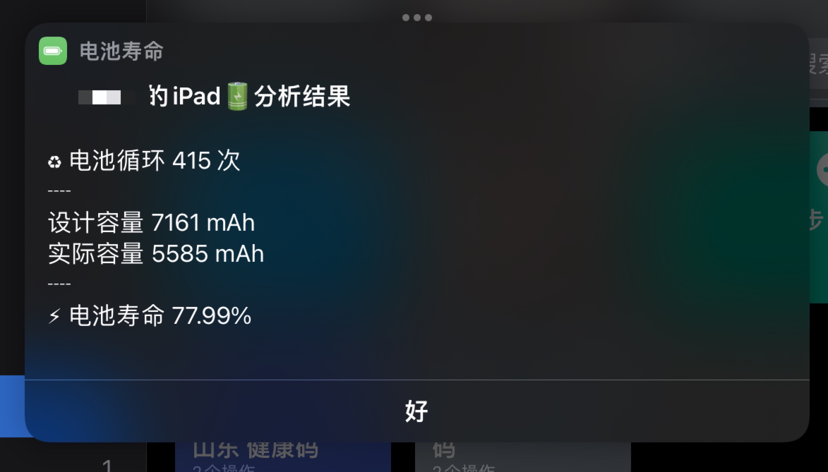 我的iPad Pro(9.7)已经很久了,感觉电池很不耐用,到Apple Store请工作人员给检测,显示结果是91%(我感觉不准,好几年的电池不太可能还保持在91%),然后我分别用快捷指令和iPad的分析数据查看了最大容量百分比,快捷指令分析得到电池寿命是77.99%,iPad的分析数据看到最大电池容量是88,三种检测方式得到三种结果,所有怎么准确检测电池健康呢?