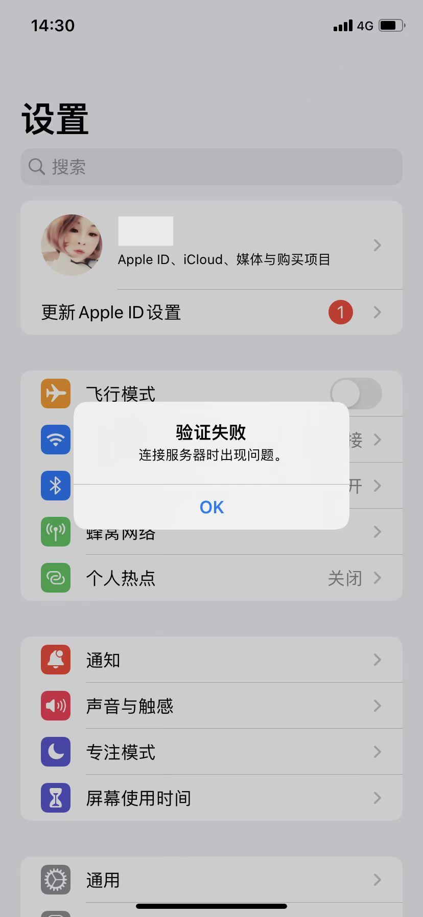 系统提示更新Apple ID设置,可是点击又出现验证失败,我网上搜的方法都试过了,全部不行!