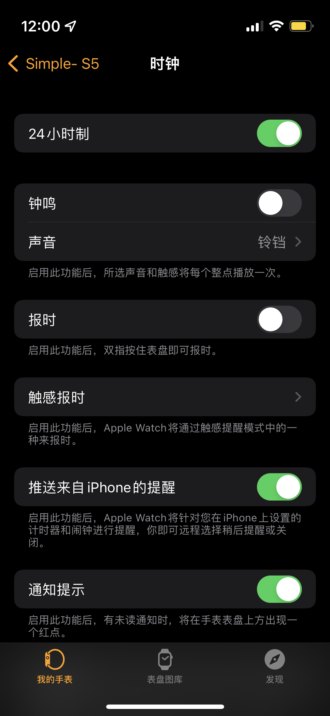 今天手机更新到IOS 15.4Beat4,手表也更新到OS 8.5(19T5238a),成功解决watch不显示24小时制的问题!