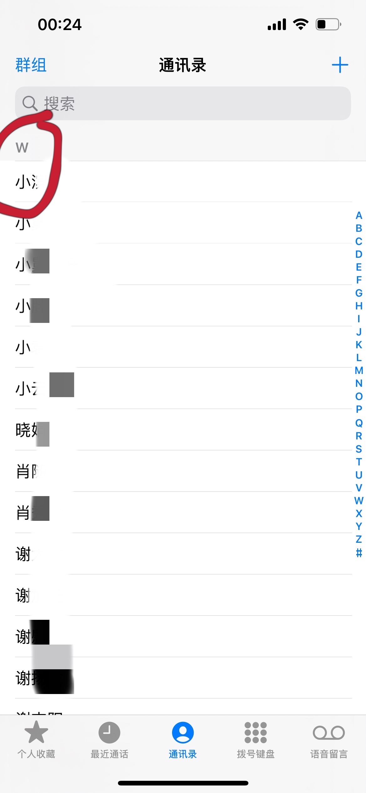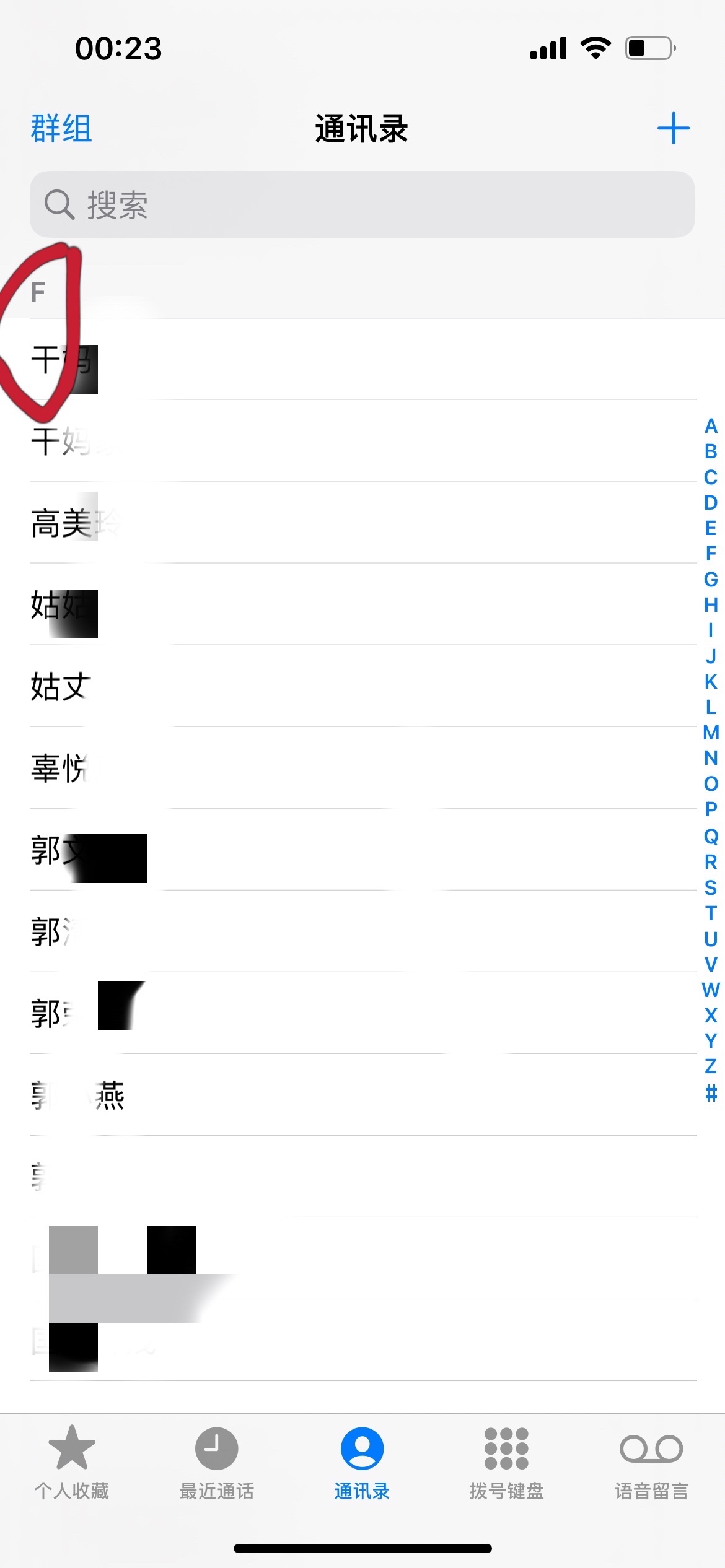 通讯录右侧字母与姓氏字母不匹配,会显示相邻字母。应该是ios15的bug,之前其他版本都没遇到过此问题,希望能更新解决,网上搜了挺多人反映该问题,我的13跟13pro都存在该问题,例如下图