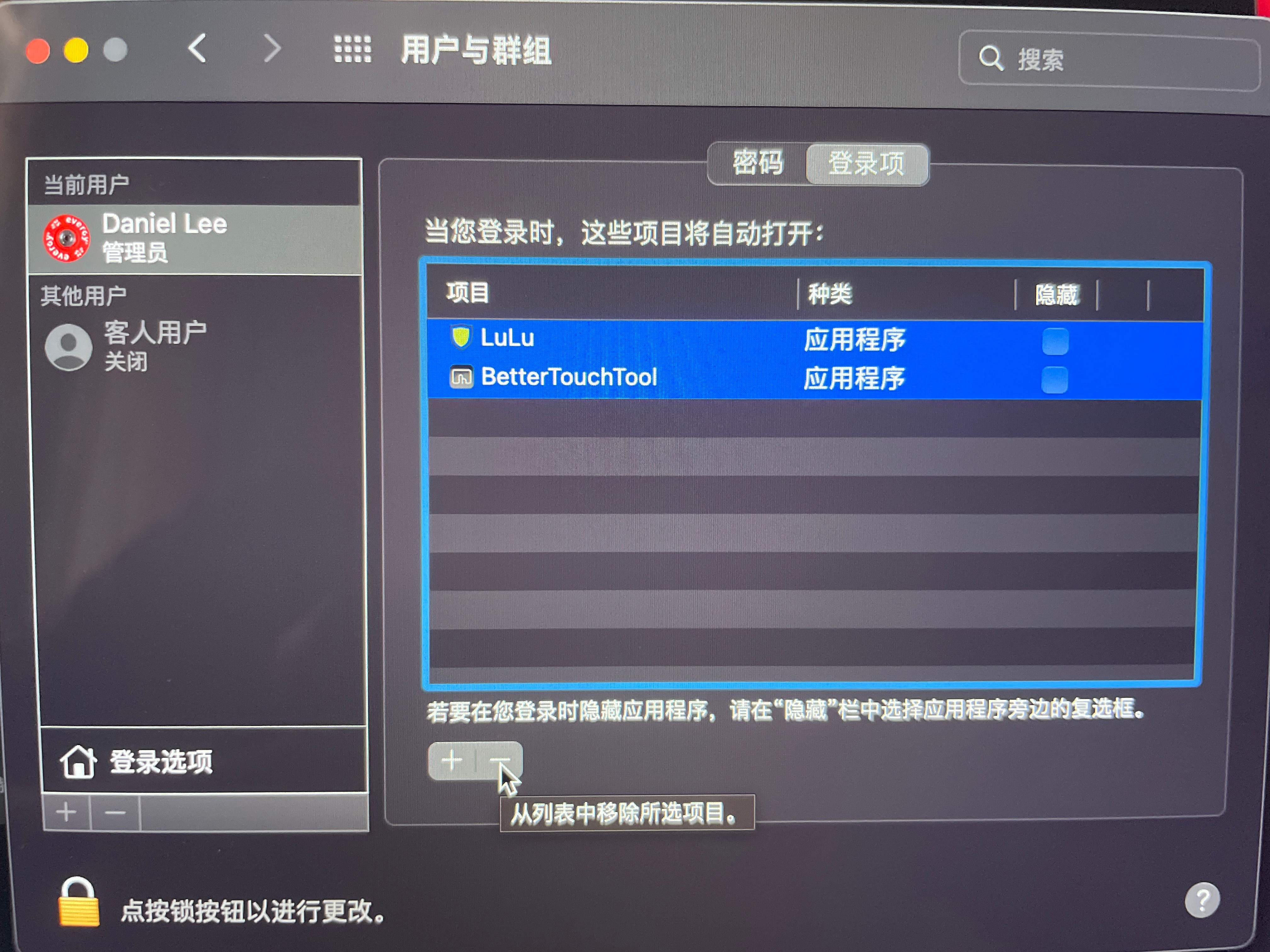 1、在系统偏好/用户与群组/登录项,把所有登录项清空。