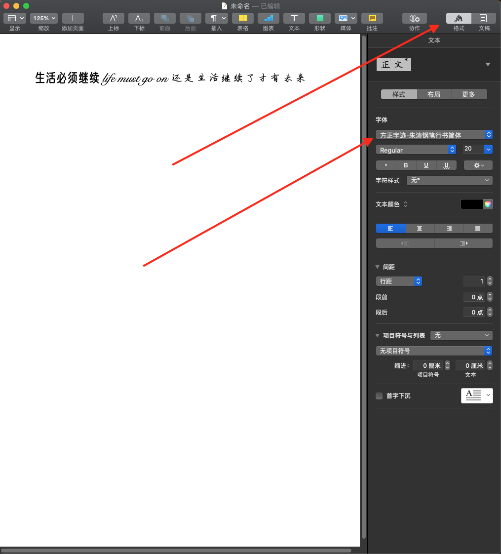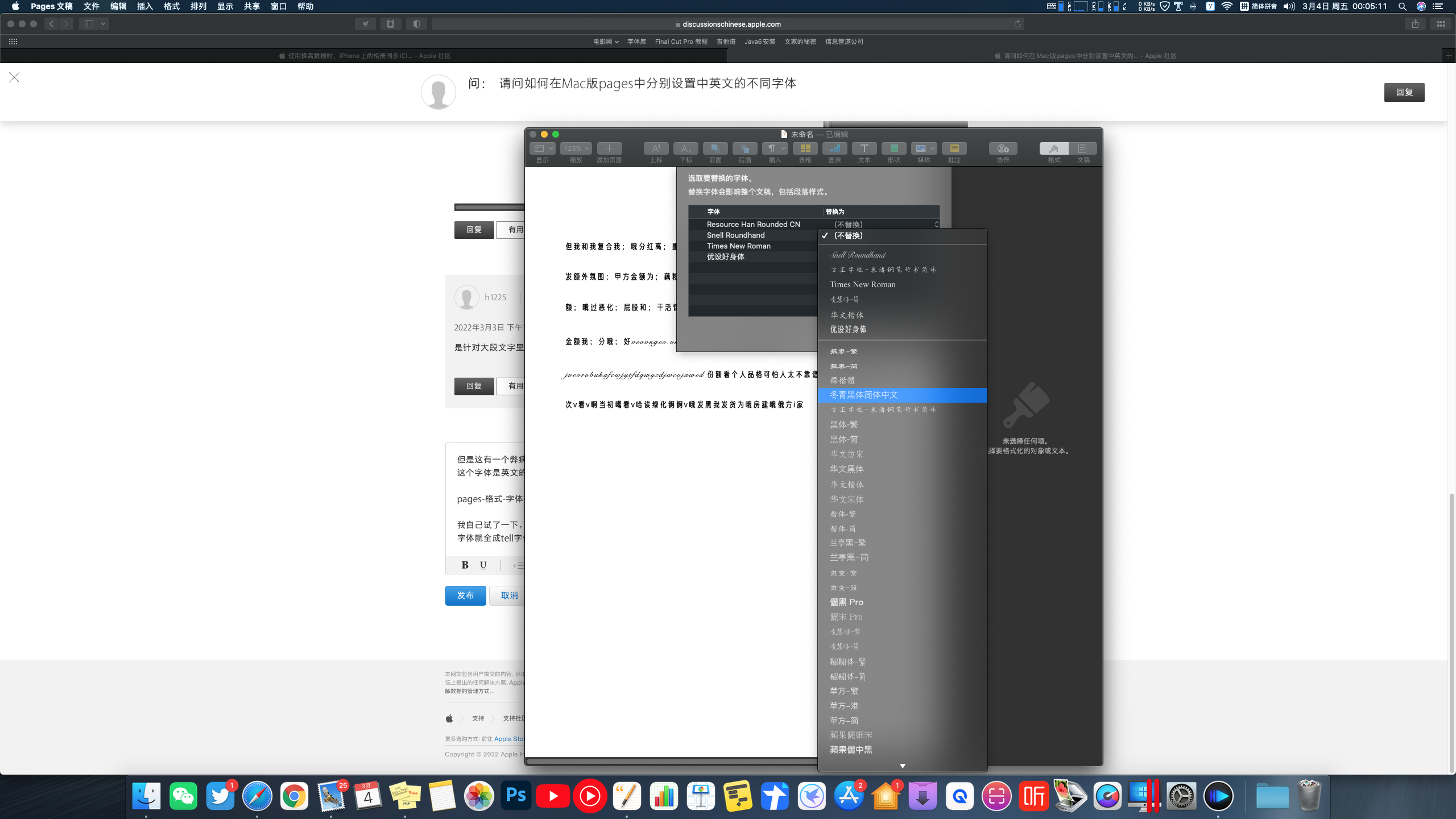 请问如何在Mac版pages中分别设置中英文的不同字体?怎么实现选中一段文字分别设置中英文的不同字体?比如:一段文字包括中文和英文内容,如何选中这段文字之后分别为英文内容和中文内容设置不同的字体(例如:中文字体设置为宋体,英文内容的字体设置为time new romans)?