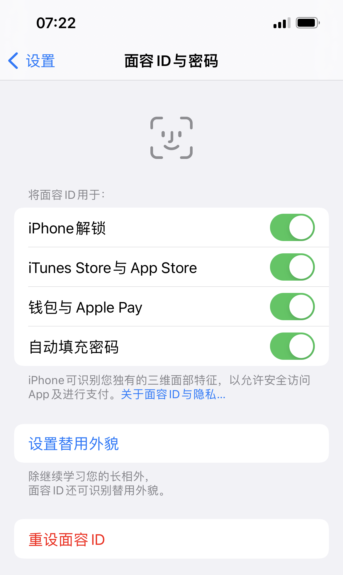 设置 → 面容ID与密码 → 将面容ID用于: 缺失 “其他应用”功能 (具体看截图)