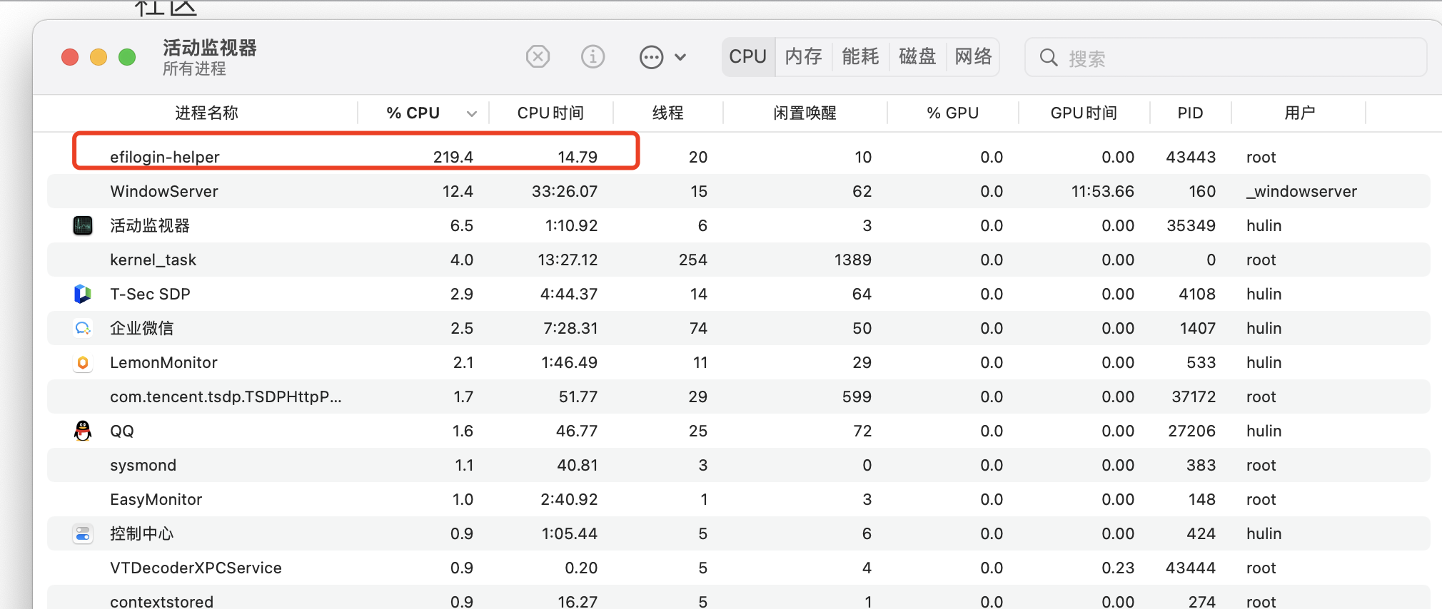efilogin-helper 占用较高cpu,改进程每隔一会儿就会出现,然后又自动关闭