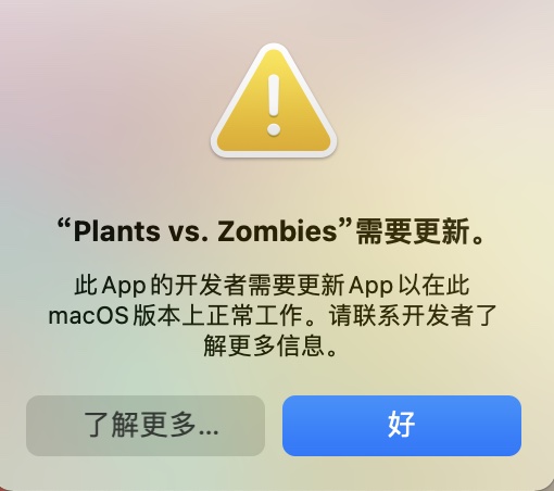 这个 App 的开发者需要更新这个 App,以使其在这个版本的 macOS 中可以运行。请联系开发者获取更多信息。