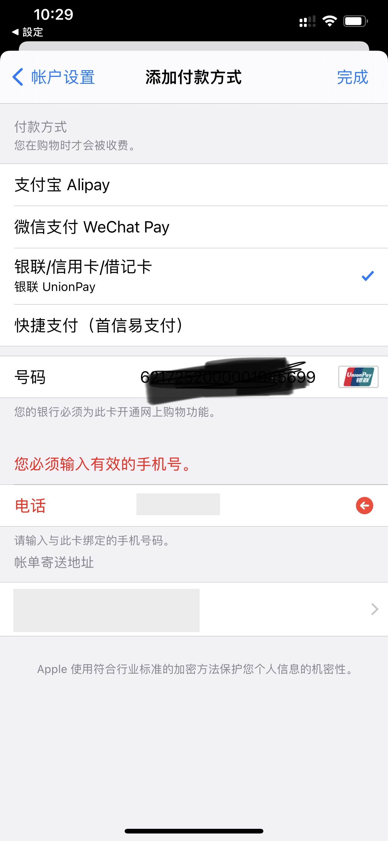 是中国银行,但是是通过香港这边的中国银行向内地的中国银行开的大湾区的内地银行卡,所以这边预留的电话号码是香港这边的,我微信跟支付宝都绑定了就剩下这个苹果账号没法绑定,。😂😂就因为电话号码输入不了。