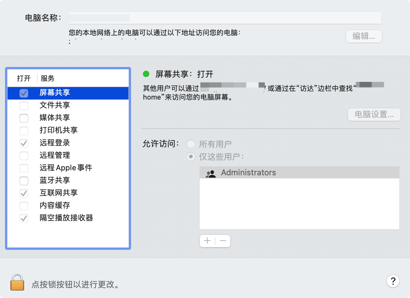 买了2021款14寸mac book,开启共享屏幕,用老的一台mac 用vnc连接,可以登陆,但是进入后就是黑屏,无法控制桌面,同样设置共享在老的mac,新的mac用vnc可以正常远程