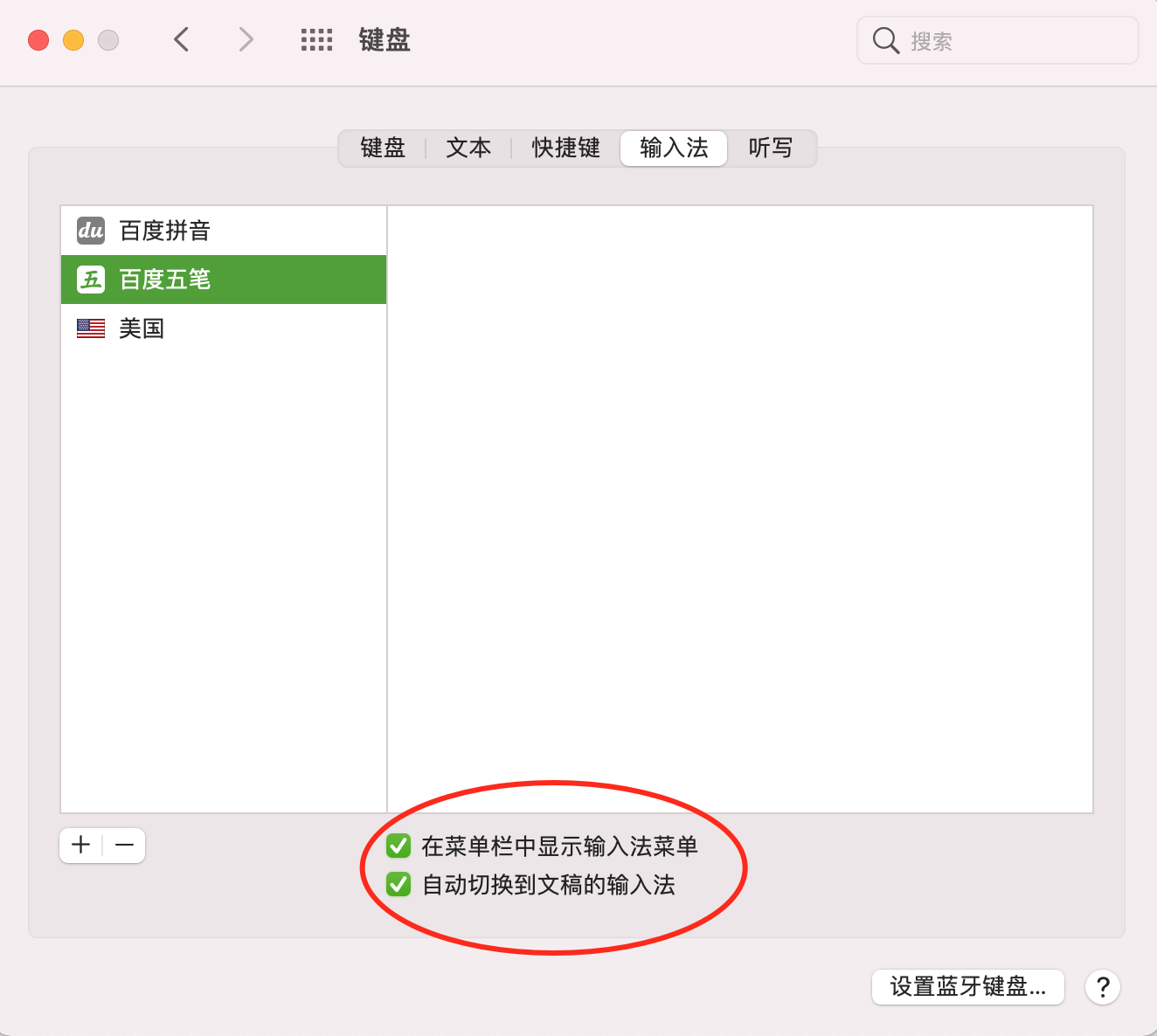 一楼:看第一张图,我只有百度五笔和美国输入法,这时下面是没有“使用大写切换美国输入法”选项的