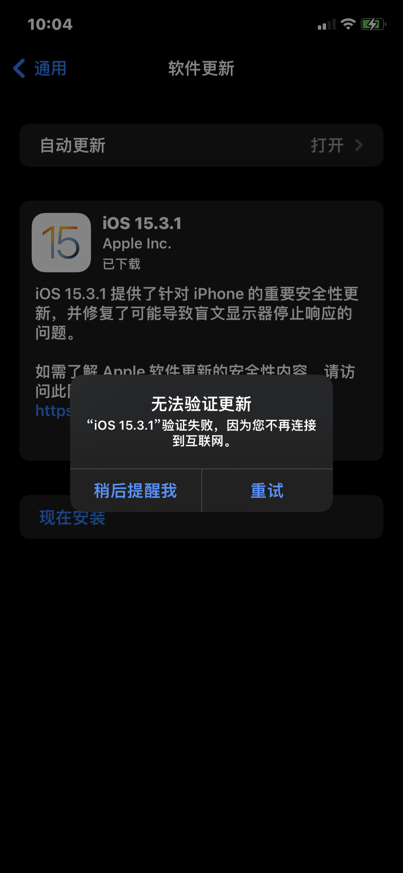 您可能会看到设备当前的版本是最新的,但有一个可用的升级。例如,即使您的设备已更新至最新版本的 iOS 14,仍可能显示升级至 iOS 15 的选项。当您将配件与 iPhone 配对时,您可能需要升级 iOS。