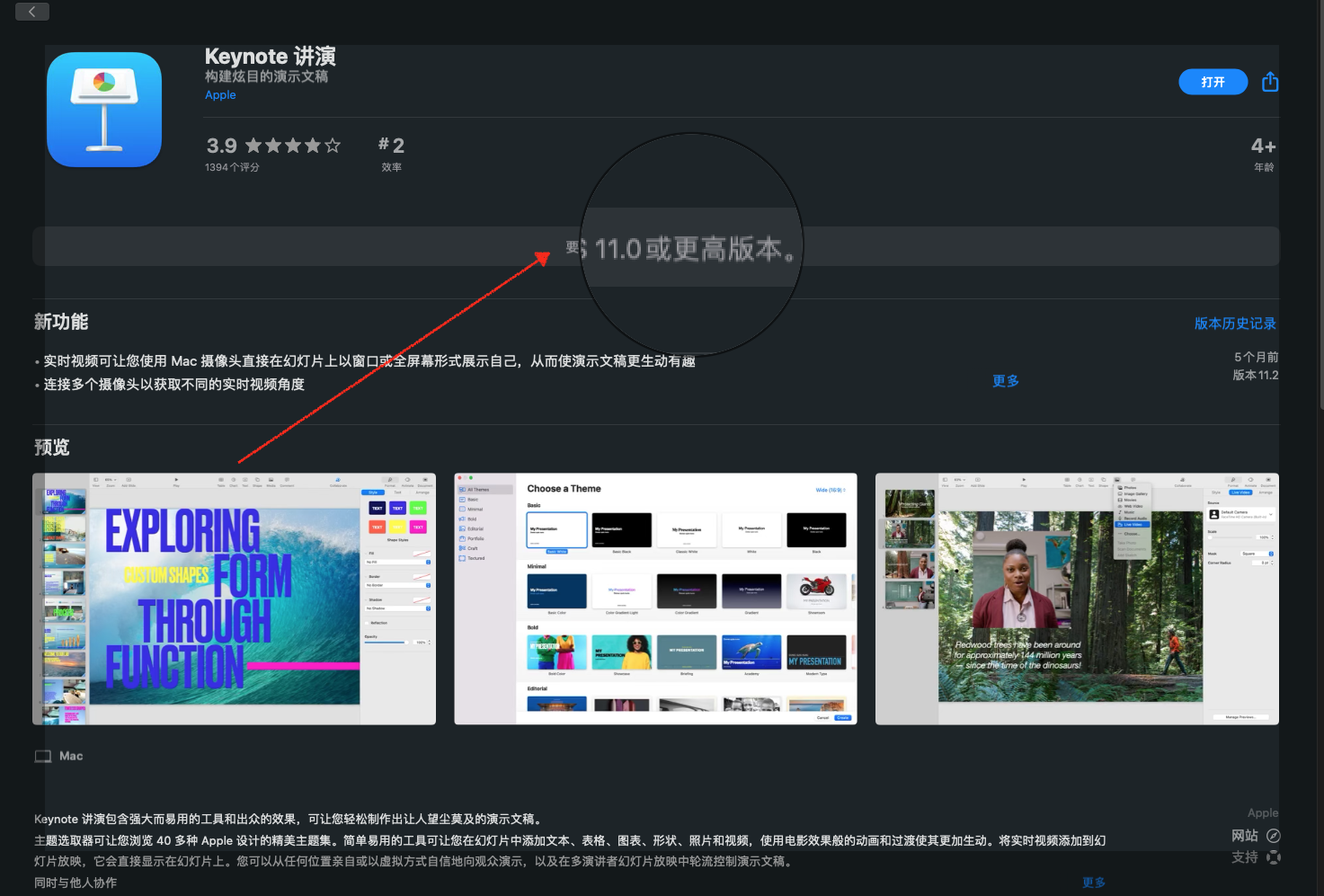 对,AppStore里面,keynote对于系统的要求是11.0以上才可使用。