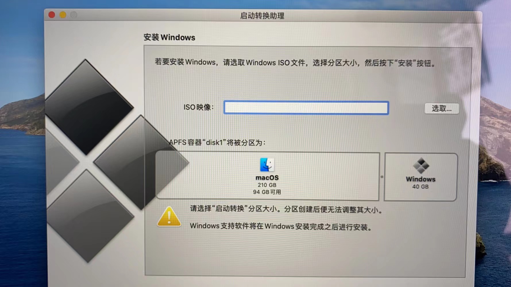 你好,这个界面是使用“启动转换助理”安装 Windows 时的操作界面。可能是由于某些原因,“启动转换助理”未能正确识别到已安装的 Windows 系统,所以出现的是安装界面而不是删除界面。