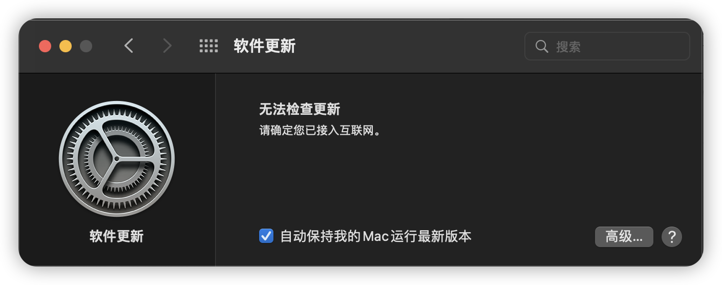 MacBook pro 2019无法更新系统,显示无法检查更新(请确定你已接入互联网)