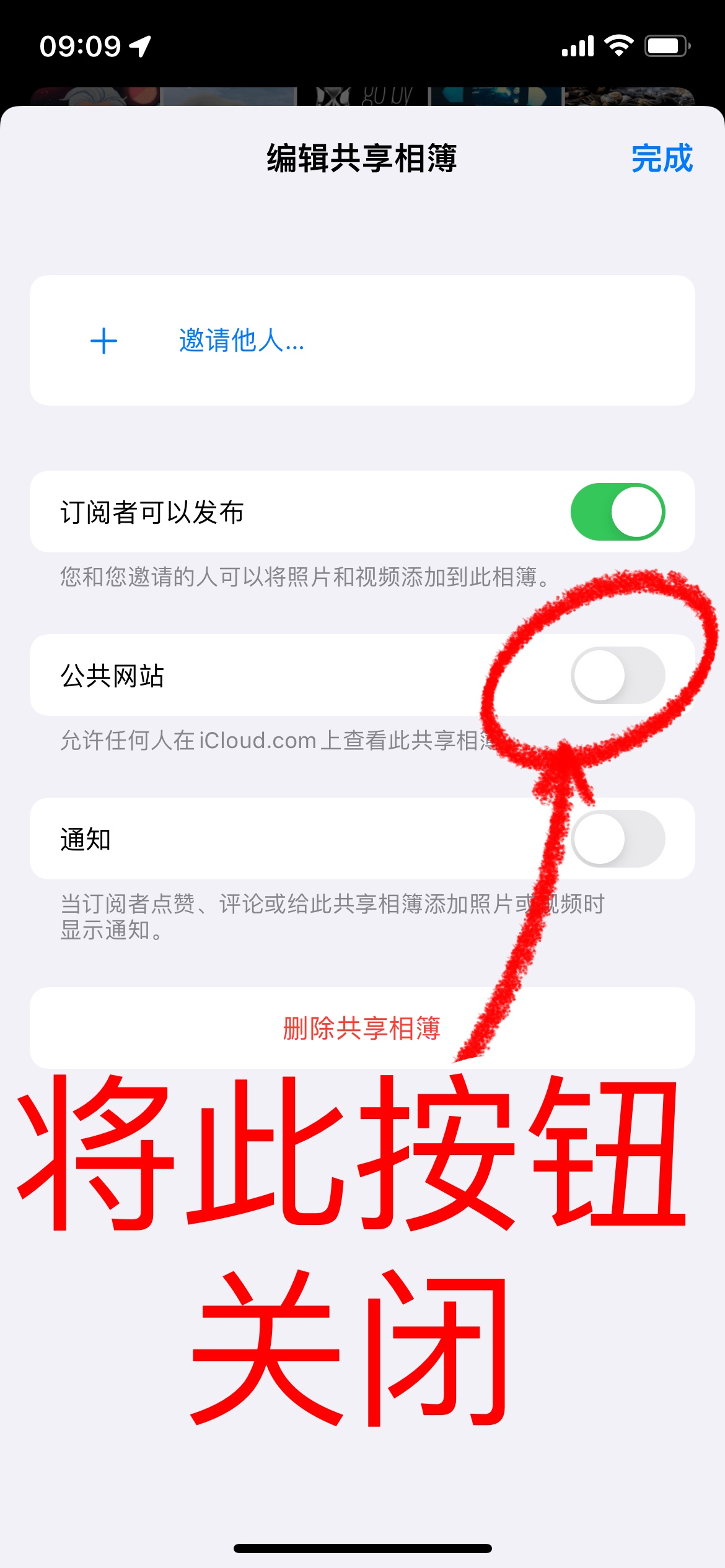 您好,您的共享相簿是有几率被他人在您共享相簿的iCloud公共网站上看到的,您可以打开照片App里您的共享相簿,点击右上角从右往左数第三个按钮“编辑共享相簿”,然后关闭其中的“公共网站”按钮,这样您的共享相簿中的内容就只能被您以及您邀请的订阅者查看,而陌生人是不可能查看您的共享相簿的。希望能帮助到您!