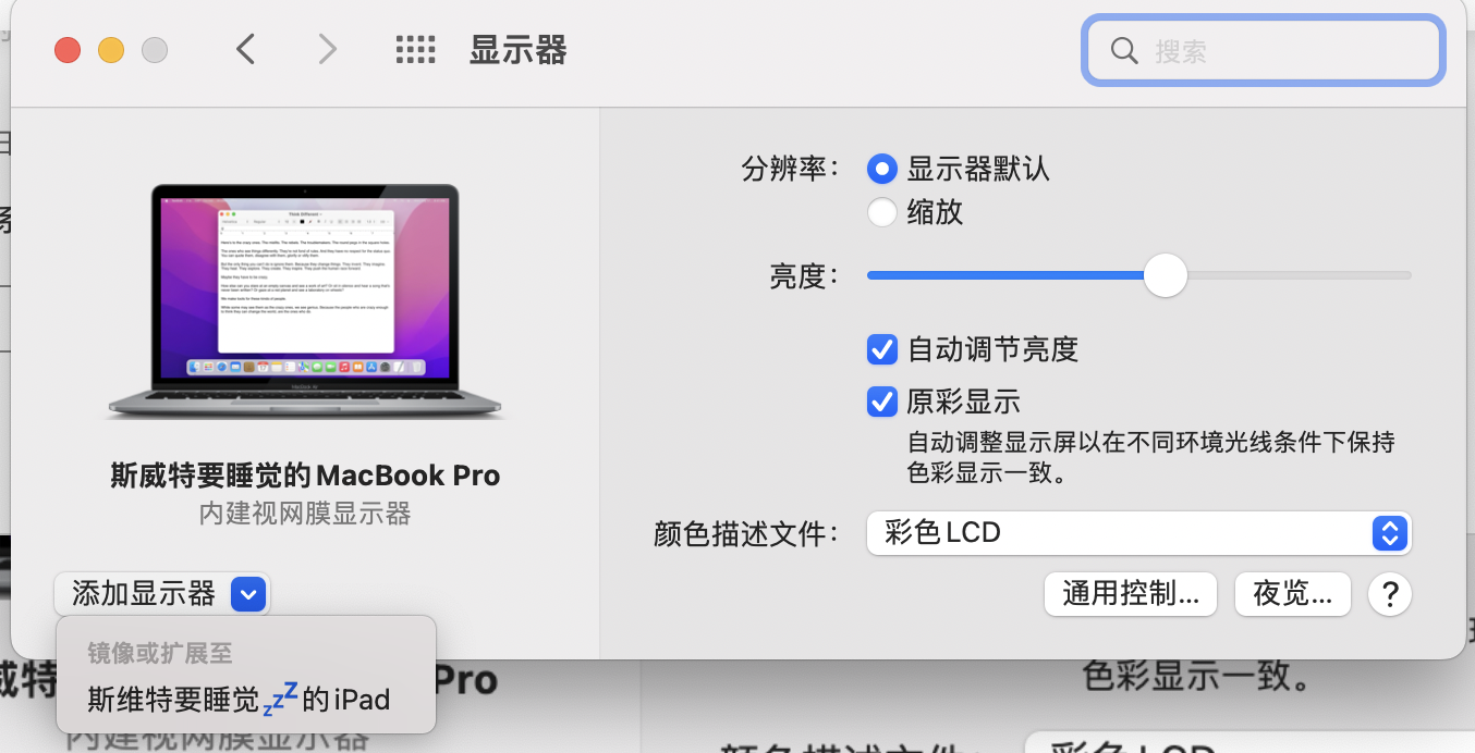 开了,但还是没有。与楼主的情况相同,只有镜像或扩展的选项。而且在一周前我使用过通用控制的功能还是可以的。不知道是哪里出了问题。
