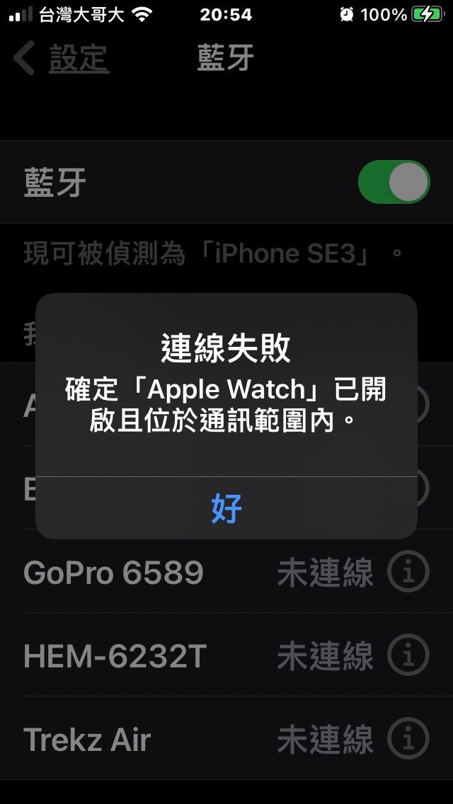 iphone se3 和apple watch 6 連線失敗