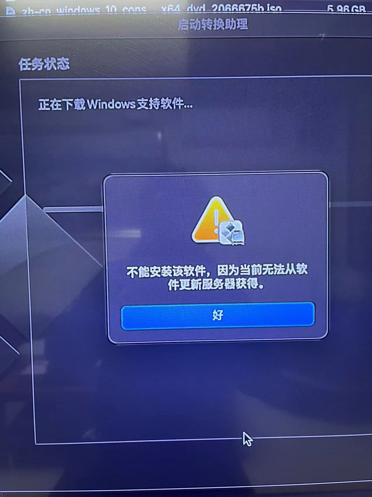 启动转换助理bootcamp,下载windows支持软件一直报错是咋回事