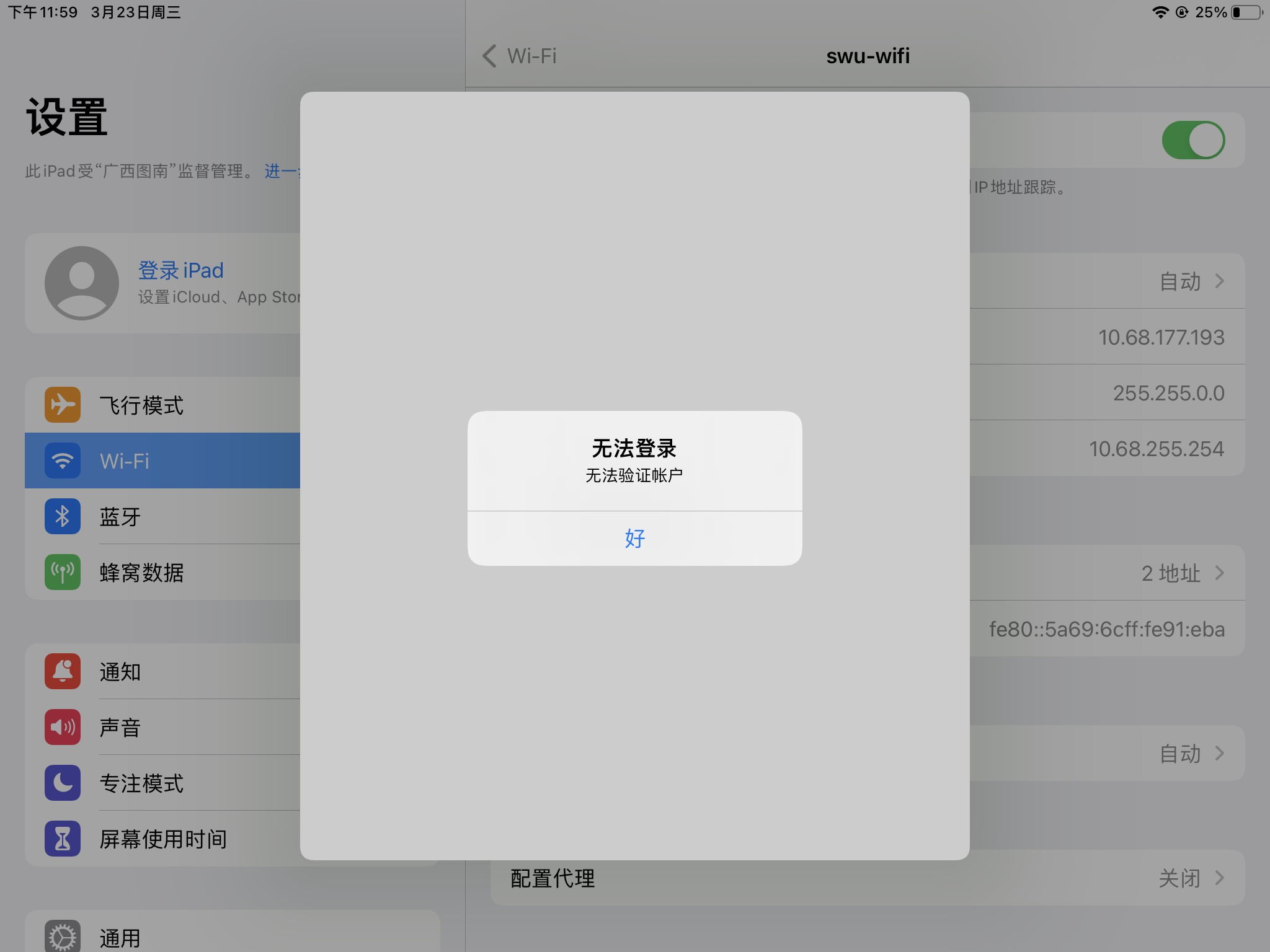 这个平板还有别监管,看一下监管文件里有没有被限制登录ID