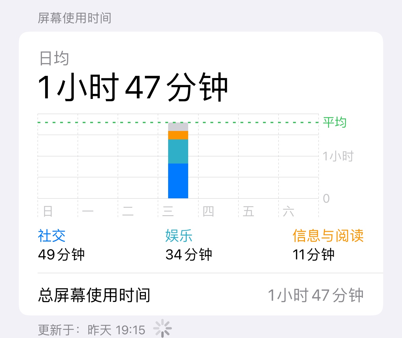 屏幕使用时间从几天前就开始不更新,我关闭重启后还是有这种情况,重启手机也没用。