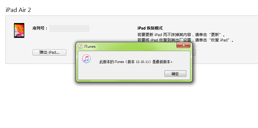 因为ipad忘记锁屏密码,所以用itunes恢复。电脑是window7 64位,为什么恢复时一直显示更新itunes,但是检查版本时候,是最新版本
