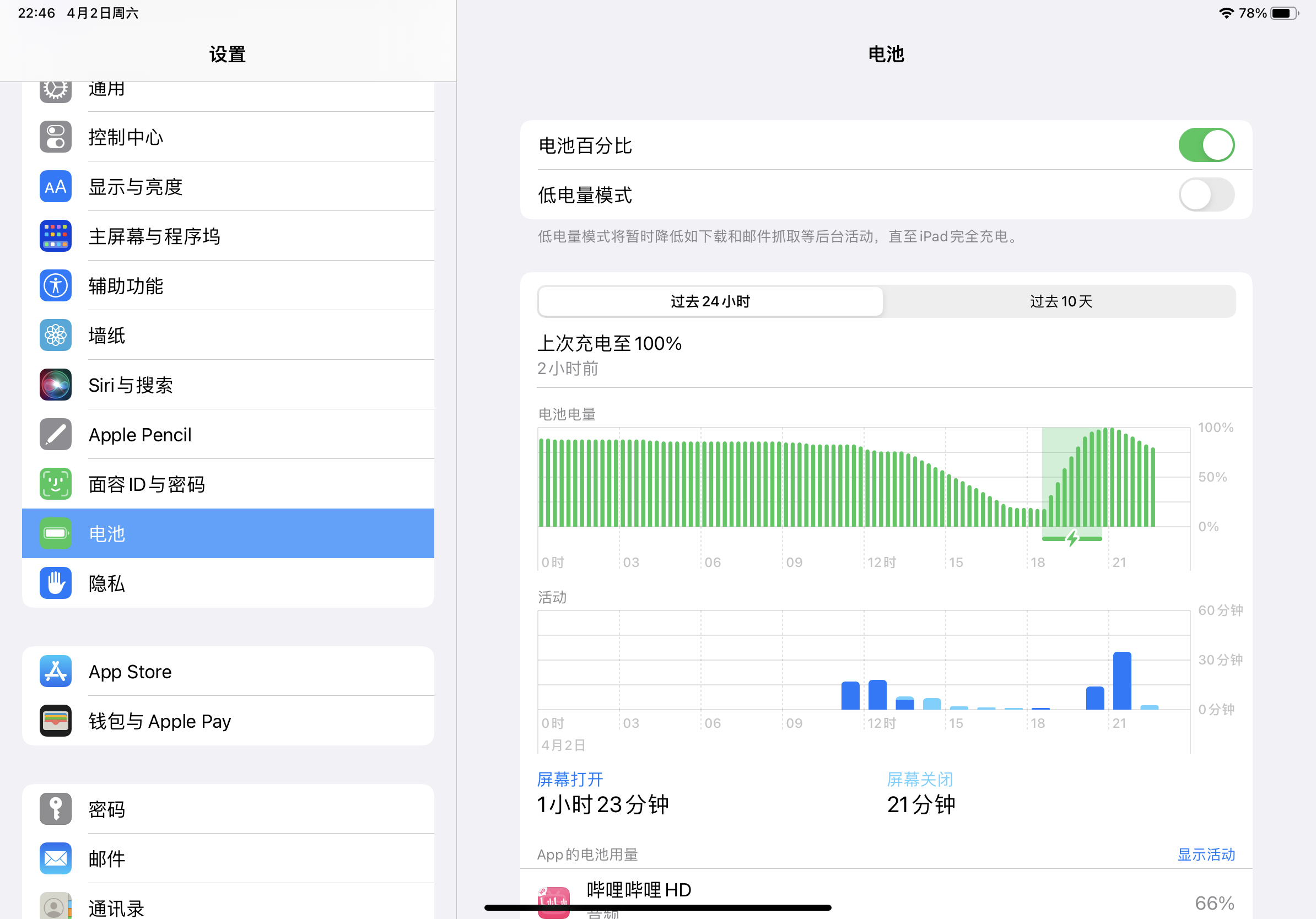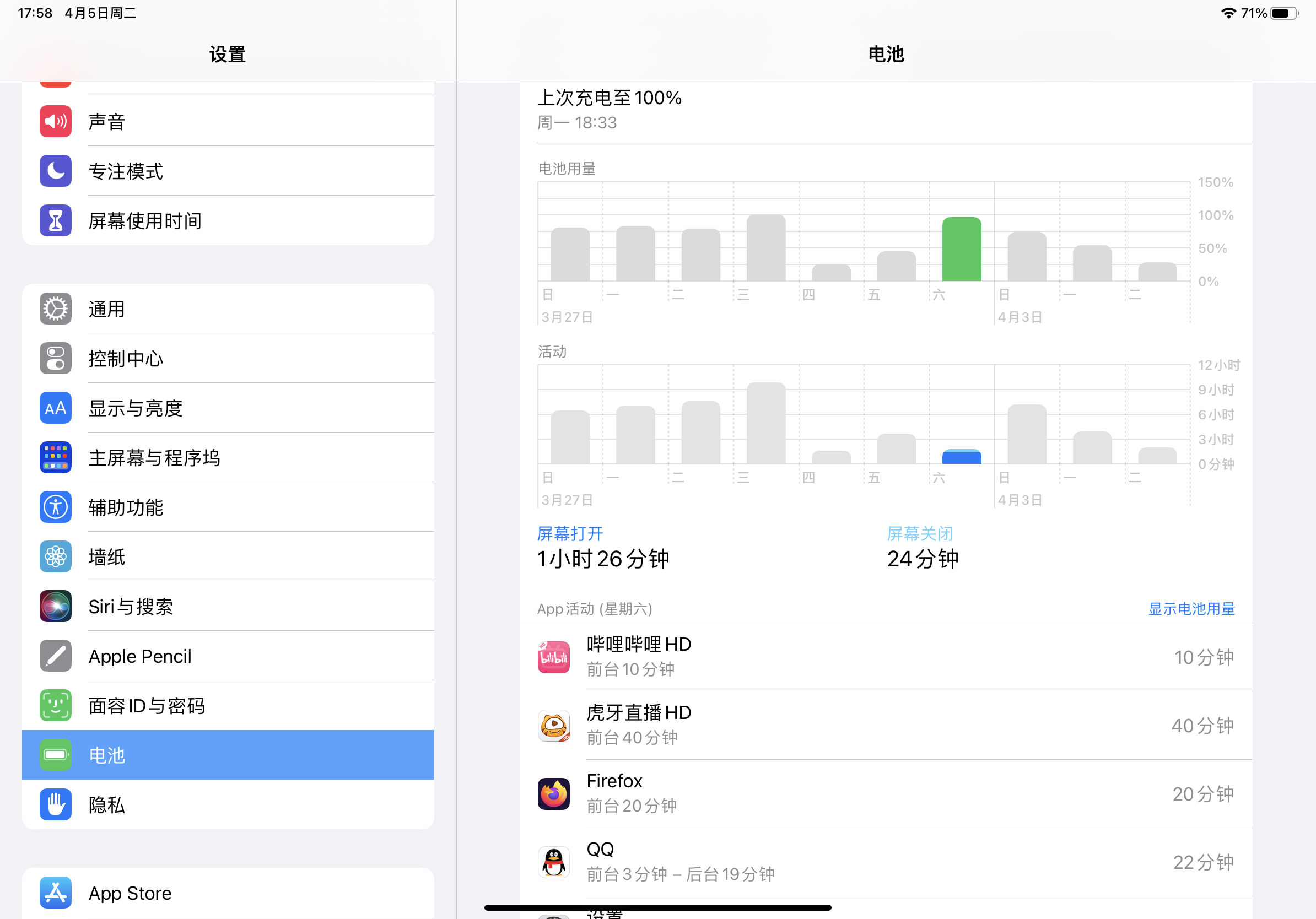 ipadOS升级到15.4.1后系统设置-电池中记录的app运行时间显示错误