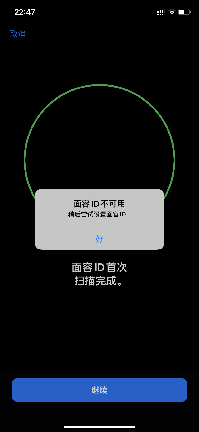 5. 完成首次面容 ID 扫描后,轻点“继续”。