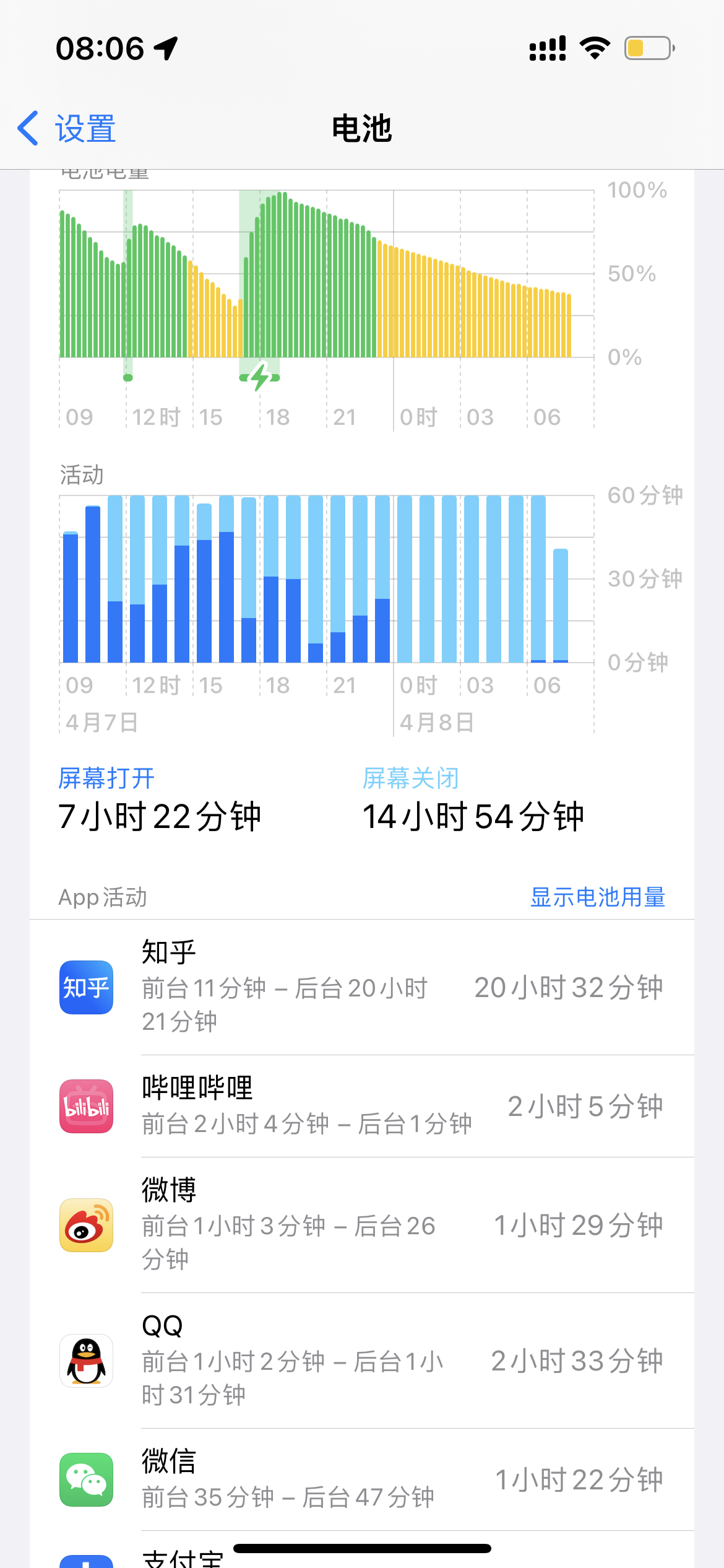 iPhone13升级15.4.1后在省电模式下,知乎异常在后台刷新20小时,而且我上一次使用知乎也是二十小时前了,此外15.4.1的续航还不如15.4