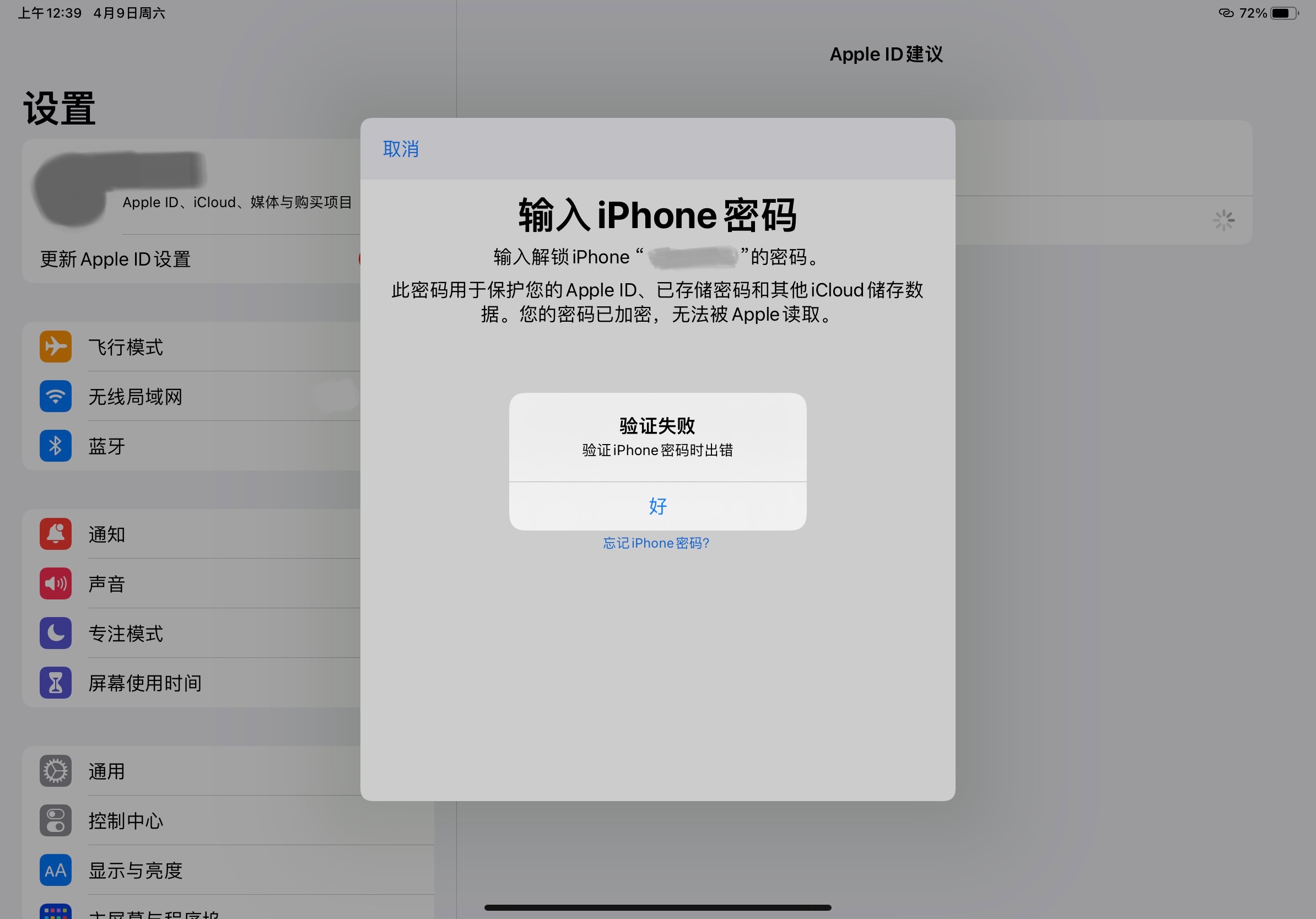 我之前手机使用的密码是A,后来换成了B,在平板上登录我的Apple ID之后要验证手机的密码,我输入B显示验证失败,输入A却验证成功了,可是我现在手机用的密码不是A啊