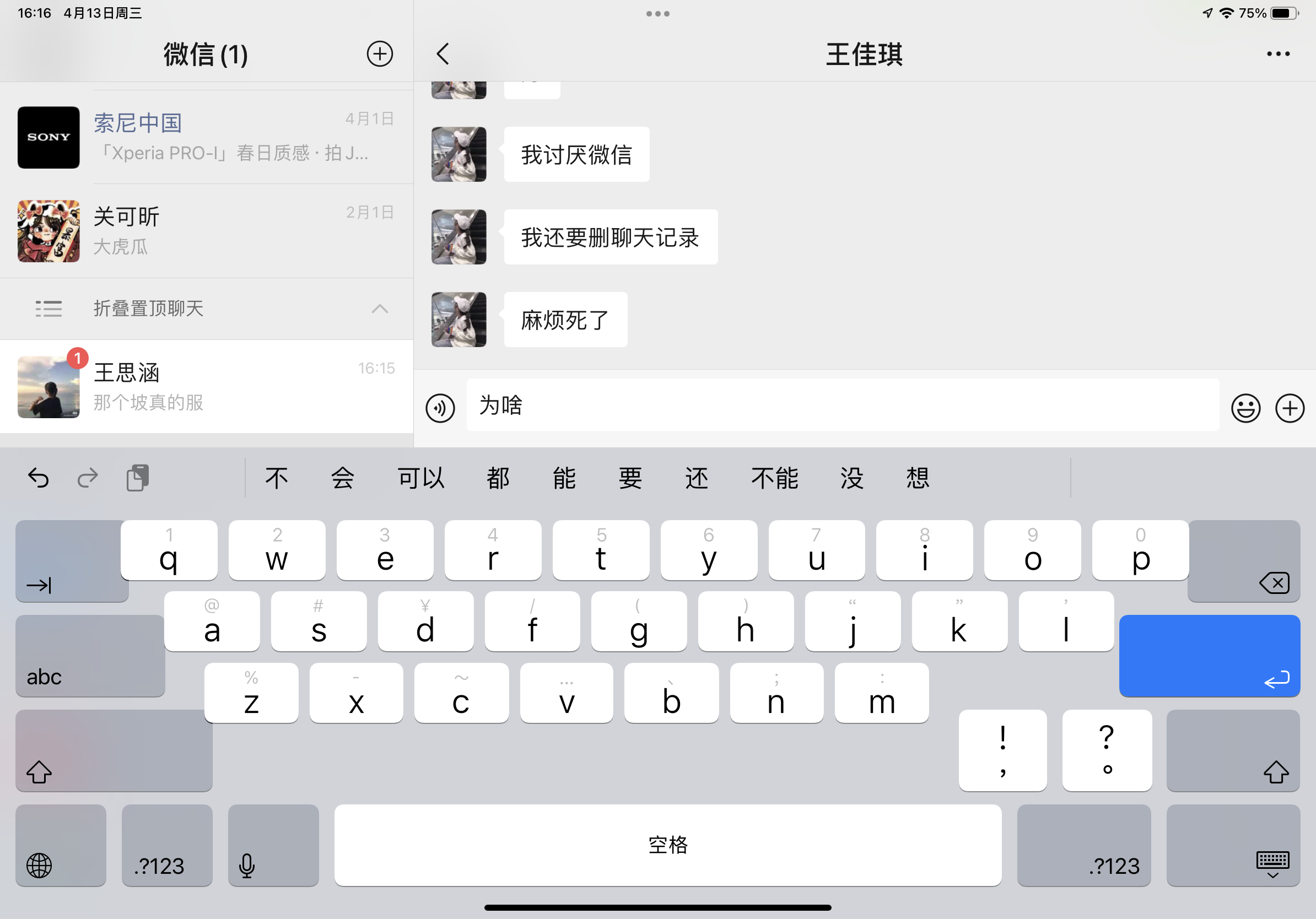 看不到你整个的截屏。你尝试点击最底部最右侧的小键盘图标 按住不放 出现提示 点击一下看看呢。