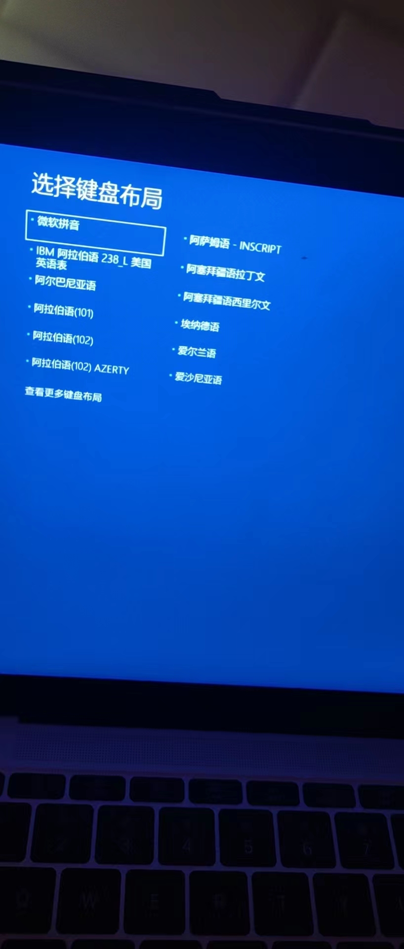 MacBook Early 2016启动Windows10时弹出选择键盘布局画面