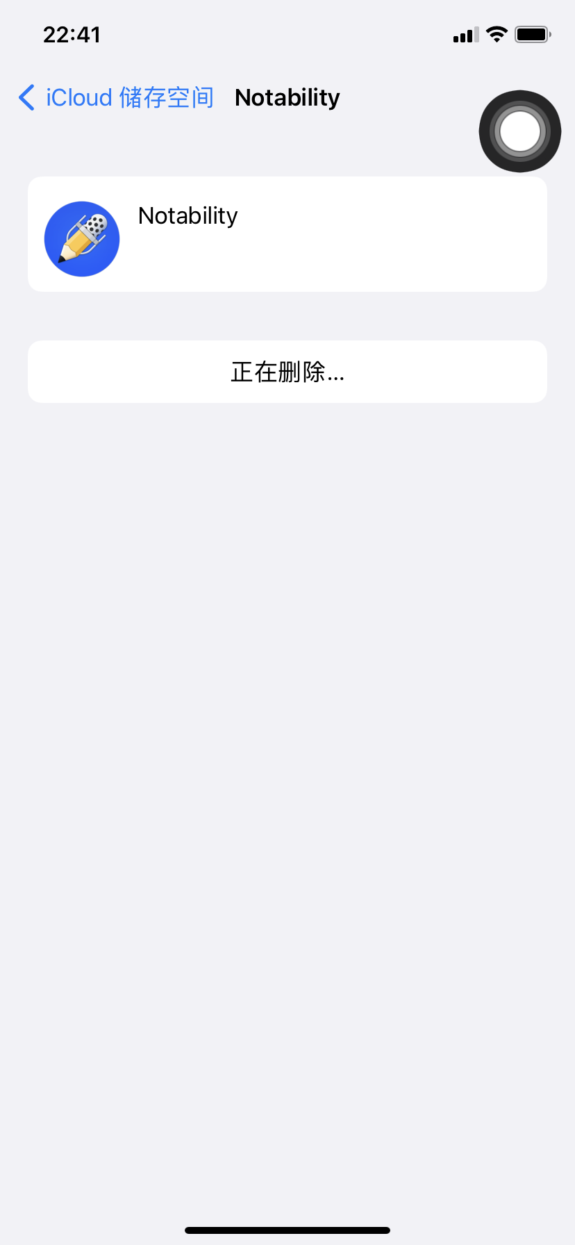 iCloud管理储存空间,删除notability,一直显示正在删除