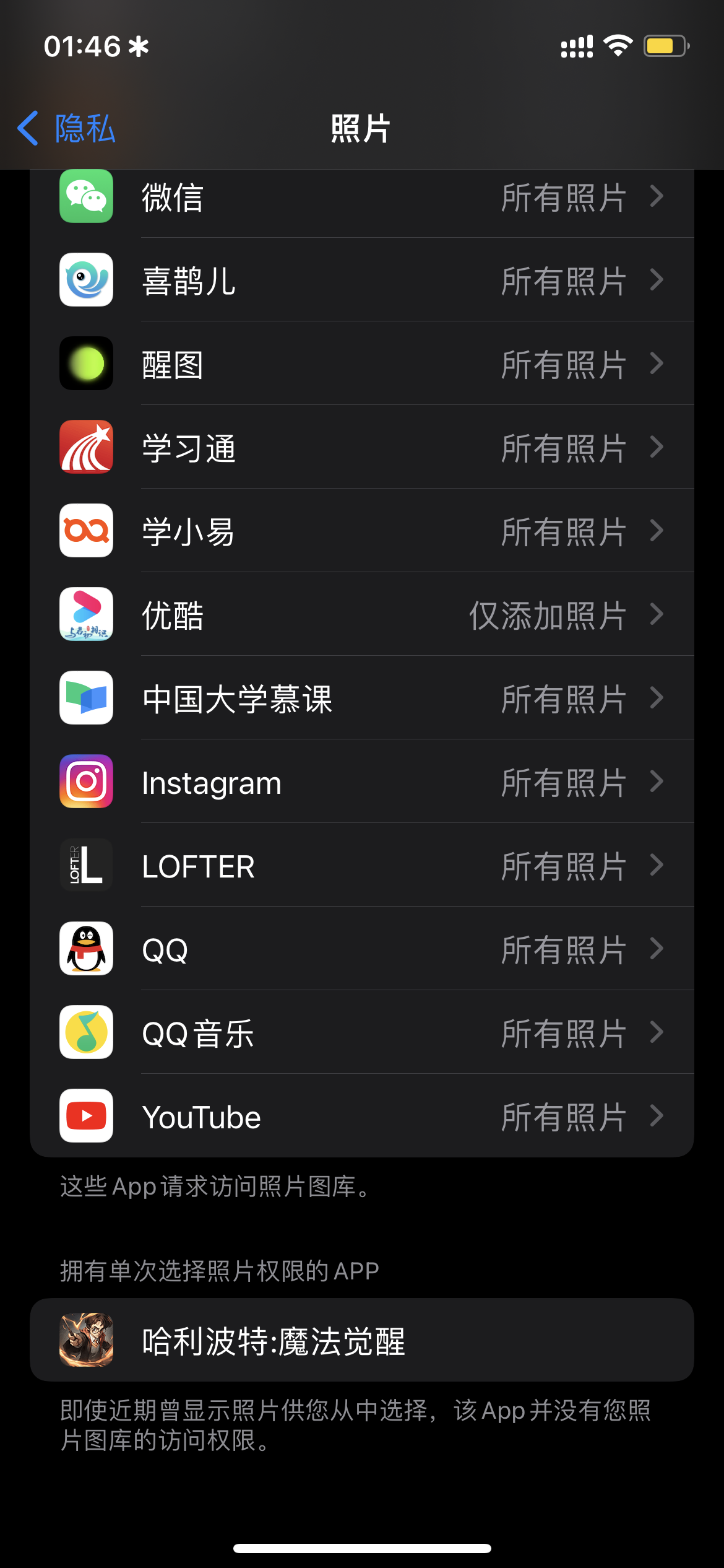 我的一个游戏app它的自定义头像的功能用不了了,打开手机设置找到这个app点开没有对照片权限的出现,在隐私的照片里面的最下面,发现这个app突然变成拥有单次选择照片权限的app,根据之前的帖子我试了设置-通用-传输或还原iPone-还原-还原所有设置,这样试了一次重启之后发现,还是一样的,拥有单次选择照片权限的app,游戏里面换头像的时候会显示一个权限申请,内容大概是使用请求访问相册功能,需要使用相册权限,后续请选择允许该游戏使用这项权限,或者前往运用权限管理中,允许游戏使用这个权限。着急!求求大家帮忙解决这个问了!!!急!