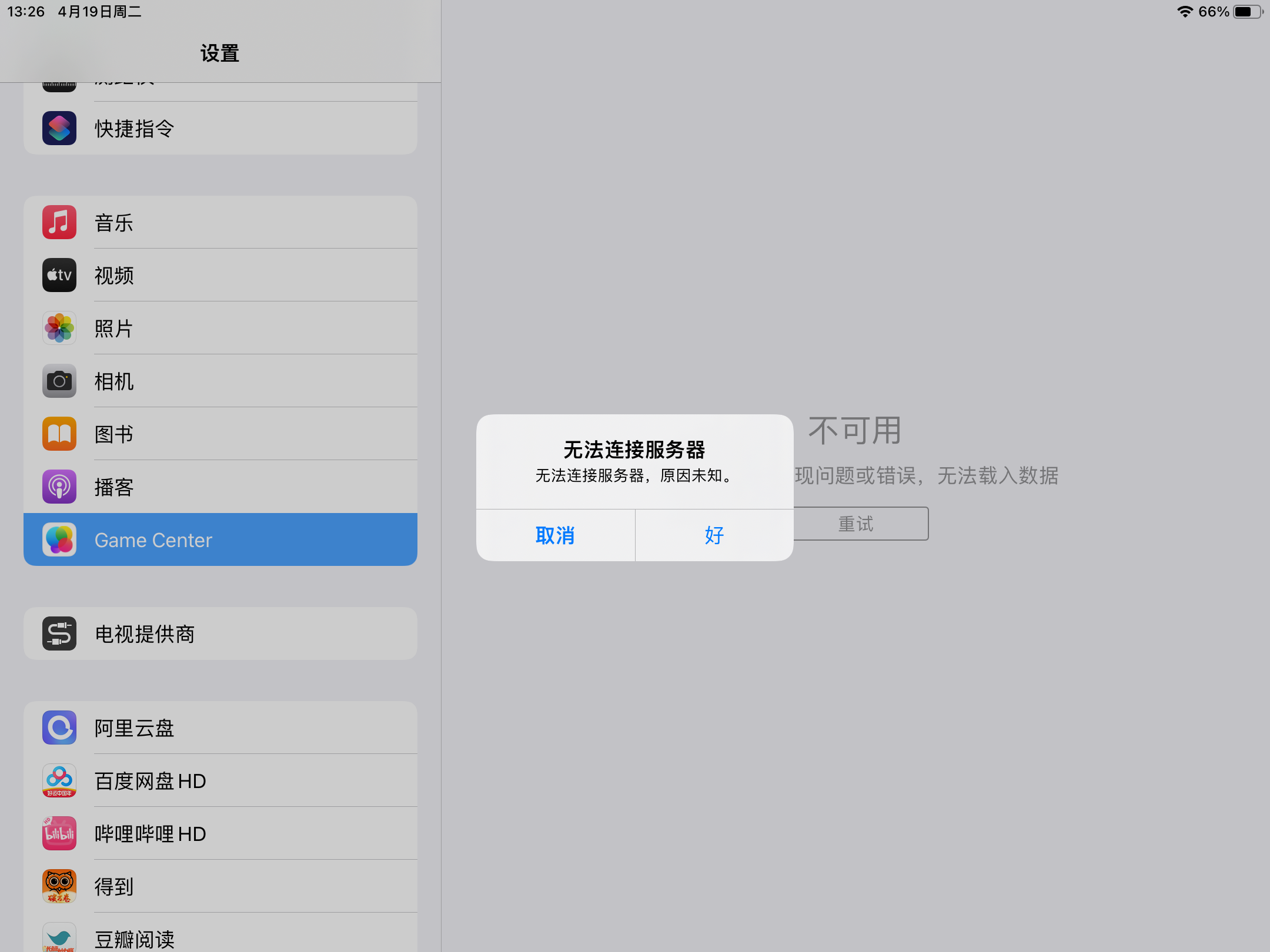 我了解到目前你在 iPad 上使用 Game Center 时遇到“无法连接服务器”的情况。建议你不妨先尝试以下操作步骤: