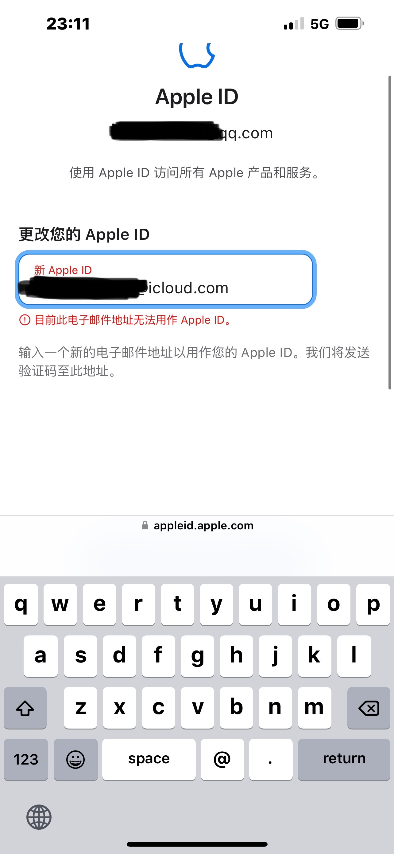 我的apple id一直是icloud邮箱,可能由于忘记在“设置”的icloud里开放邮件权限(个人猜测),导致我的邮件app无法登陆icloud并显示“由于安全问题,您的apple id被锁定”,我选择通过邮件解锁却发现没有收到任何邮件,在官网登录iCloud也没有提示被锁,一切功能正常使用,我就在“管理apple id”中把id换成了qq邮箱,又在设置里打开了邮件的iCloud权限,结果邮件可以用iCloud了,也没有提示被锁定了,但是却发现我的apple id无法换回iCloud邮箱了。