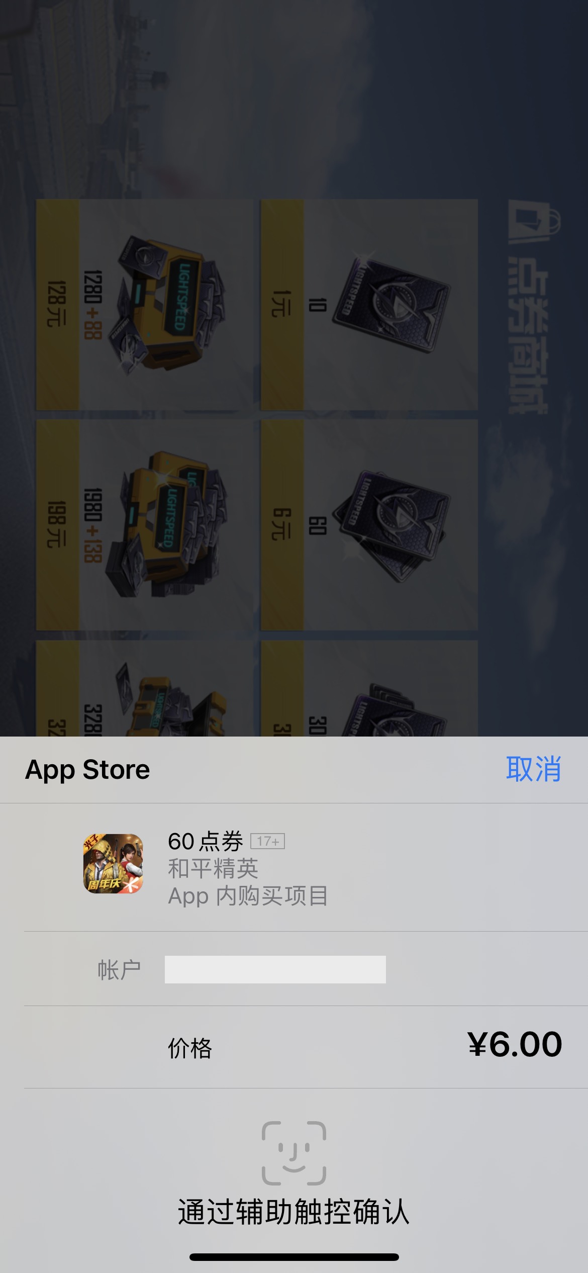 苹果12无法给和平精英充值没有侧边键的确认无法充值