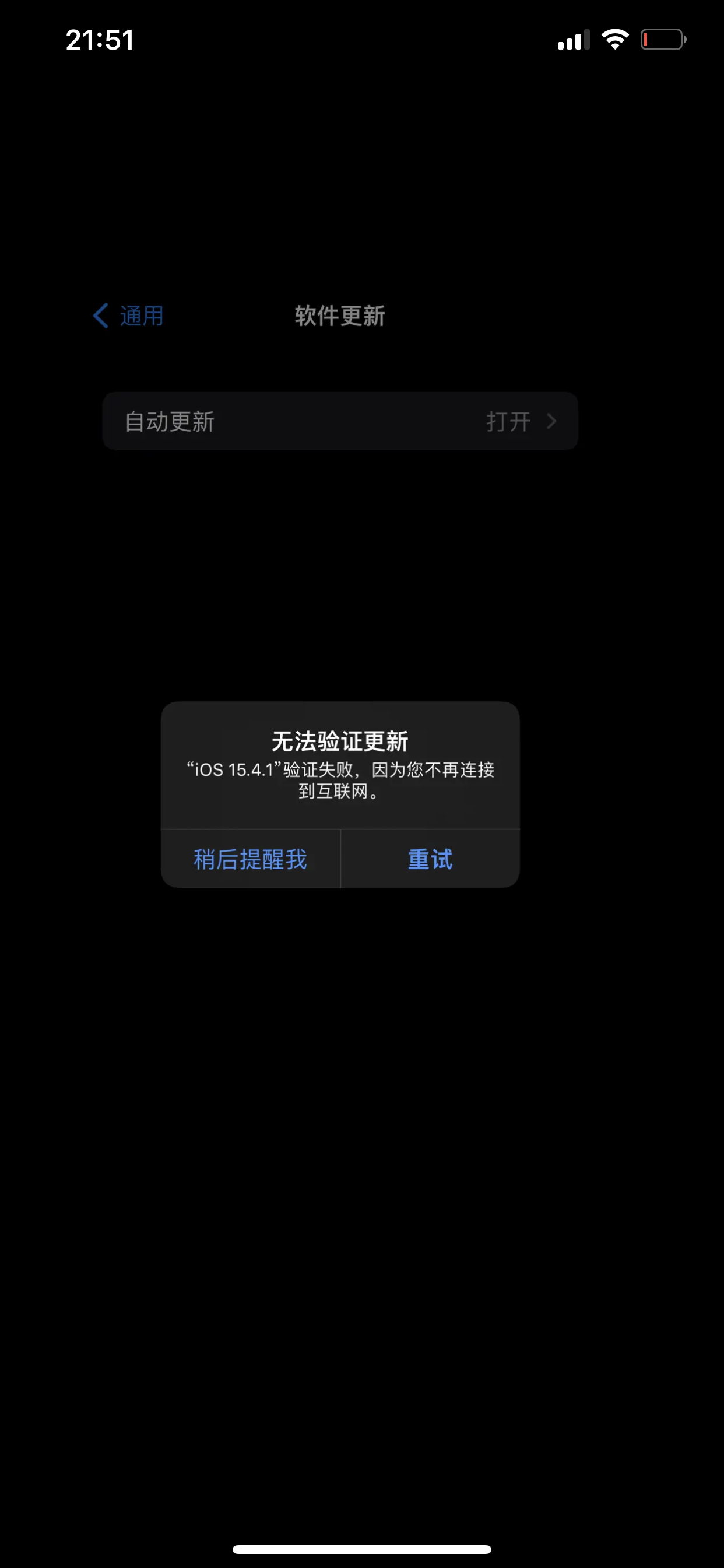 更新iOS15.4.1显示无法验证更新,但是连到网了
