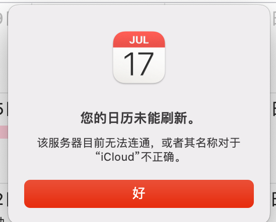 macbook 日历提示如图,试过重新登录电脑,重启电脑都无效