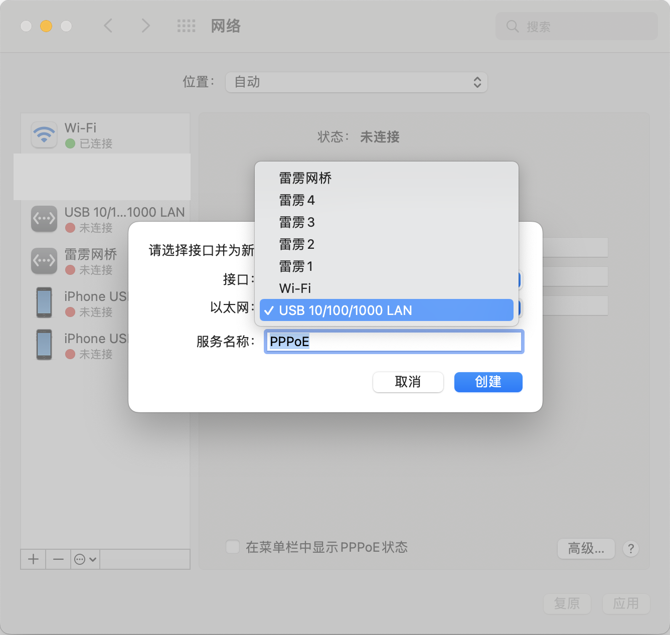 以下用户的用户个人资料: Rhaplanca Rhaplanca 用户级别: 级别 6 8,946 积分 2022年5月4日 下午8:51 回应 Mmmht 你好,如果你的 Mac 没有网线接口,而是需要通过外置网卡设备进行转接。那么在设置 PPPoE 拨号时,请将此处的“以太网”设置为你使用的外接网络转接设备的名称(具体名称根据设备制造商的不同也会不一样,设置前请做好所有的线路连接)。另请参阅在 Mac 上的“网络”偏好设置中更改 PPPoE 设置。 回复 链接
