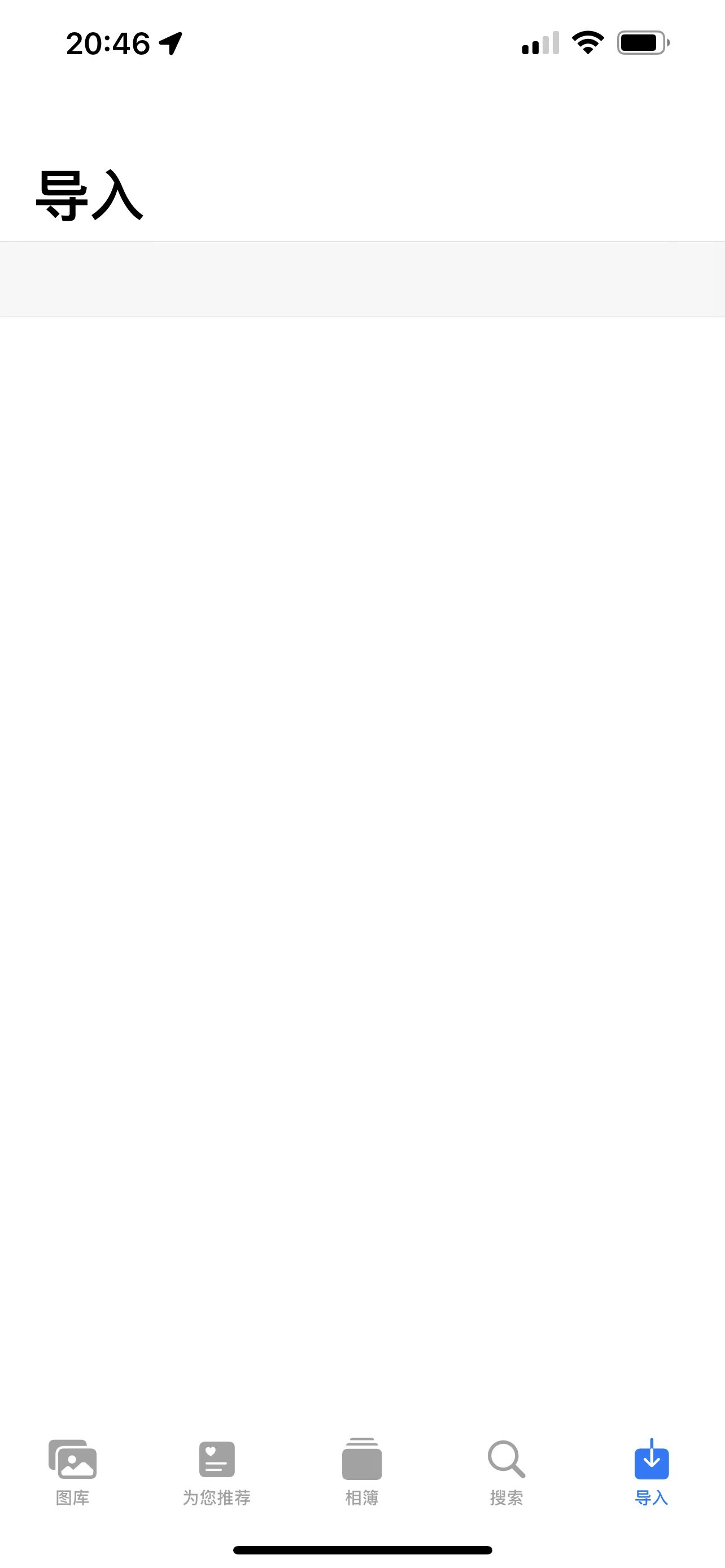 我的设备是iPhone13promax(版本15.4.1),把SD卡用读卡器连接我的iPhone之后照片里面底下出现有导入,但是一张照片都不显示,如图
