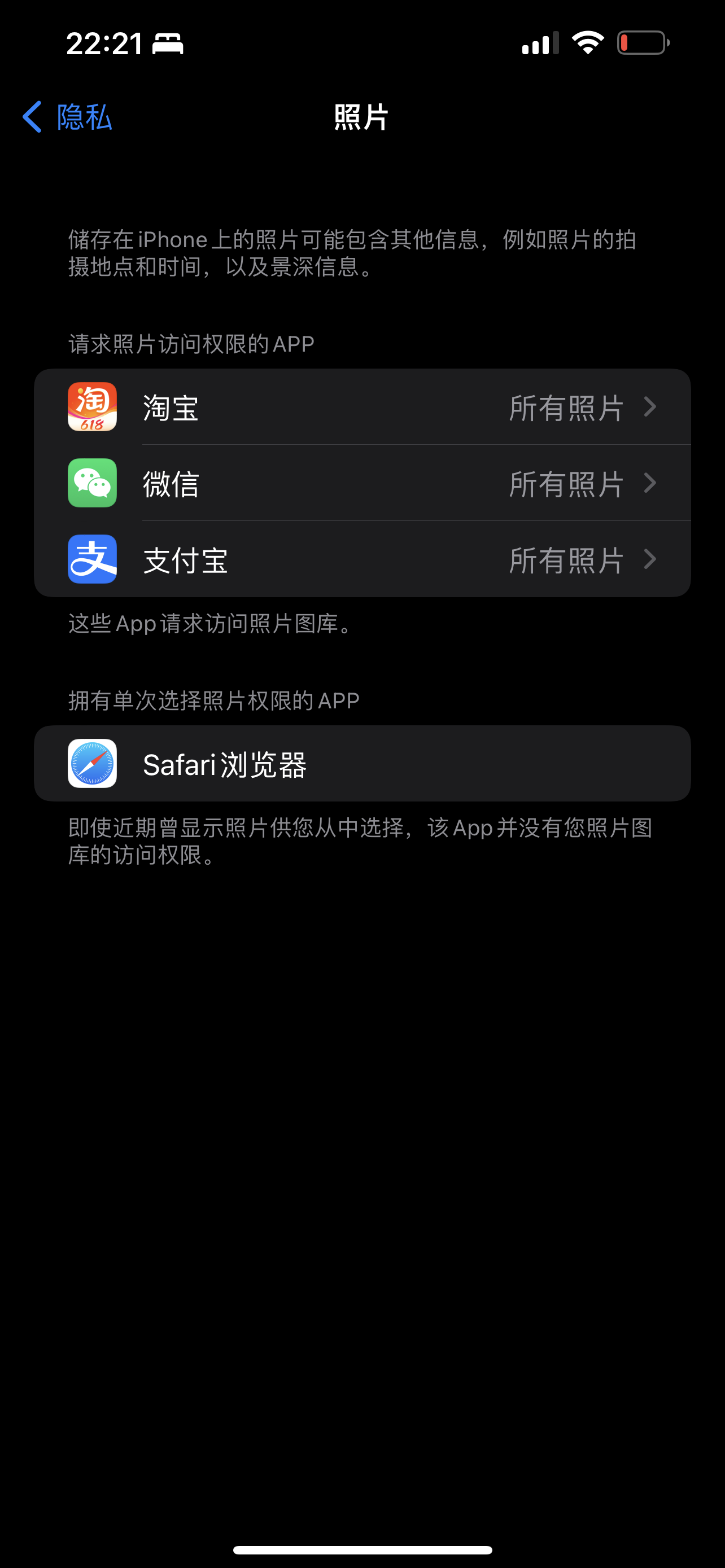 拥有单次选择照片权限的 APP Safari浏览器,怎么修改