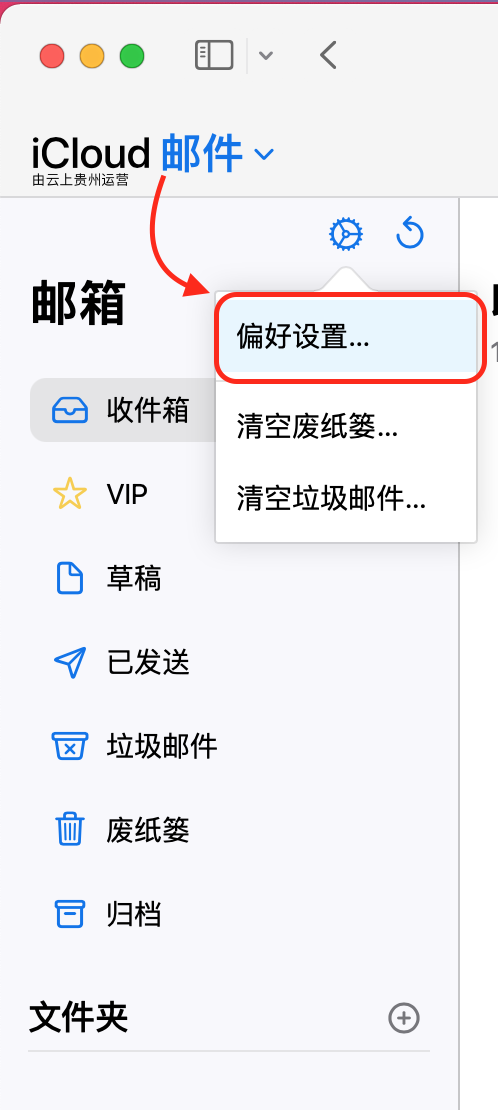 www.icloud.com.cn 中打开iCloud邮件,然后点击iCloud邮件偏好设置,