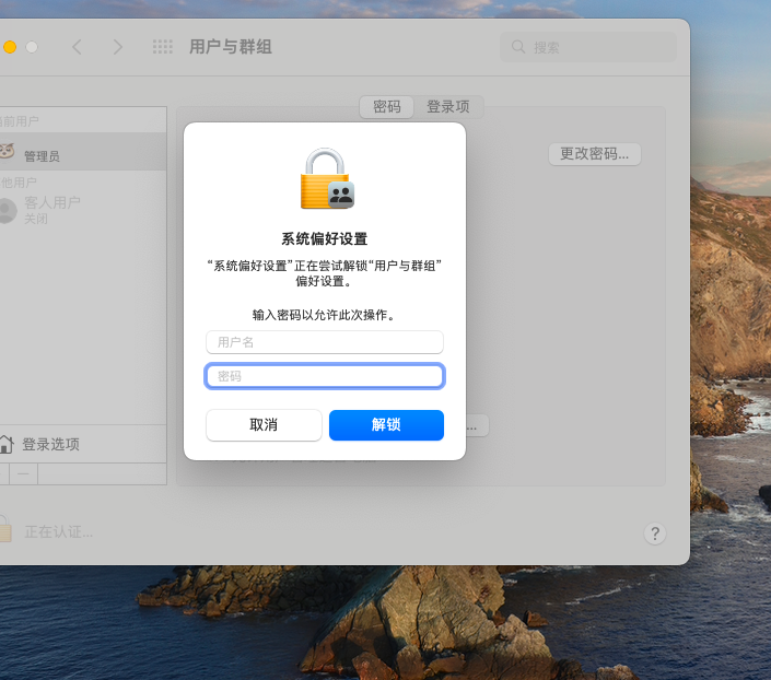 在我更新了Mackbook air系统到Monterey后,我无法从系统偏好性设置中打开锁,并且同时,我发现我的管理员名称在用户与群组那里变成了空白,我确定我之前是都可以打开的,并且在点击锁那里会自动出现名字(是什么我记得不太清楚了),但目前管理员名称变成空白以后,没有帮我自动输入,我尝试了我的Apple ID名字、邮件地址,密码那里我尝试了Apple密码和开机密码,都显示不正确,这让我非常困惑,同时,我并没有在网上找到这一类型的案例