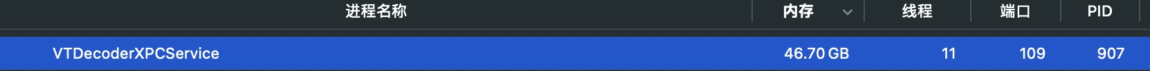 VTDecoderXPCService是什么东西,在后台运行,占用内存近47GB