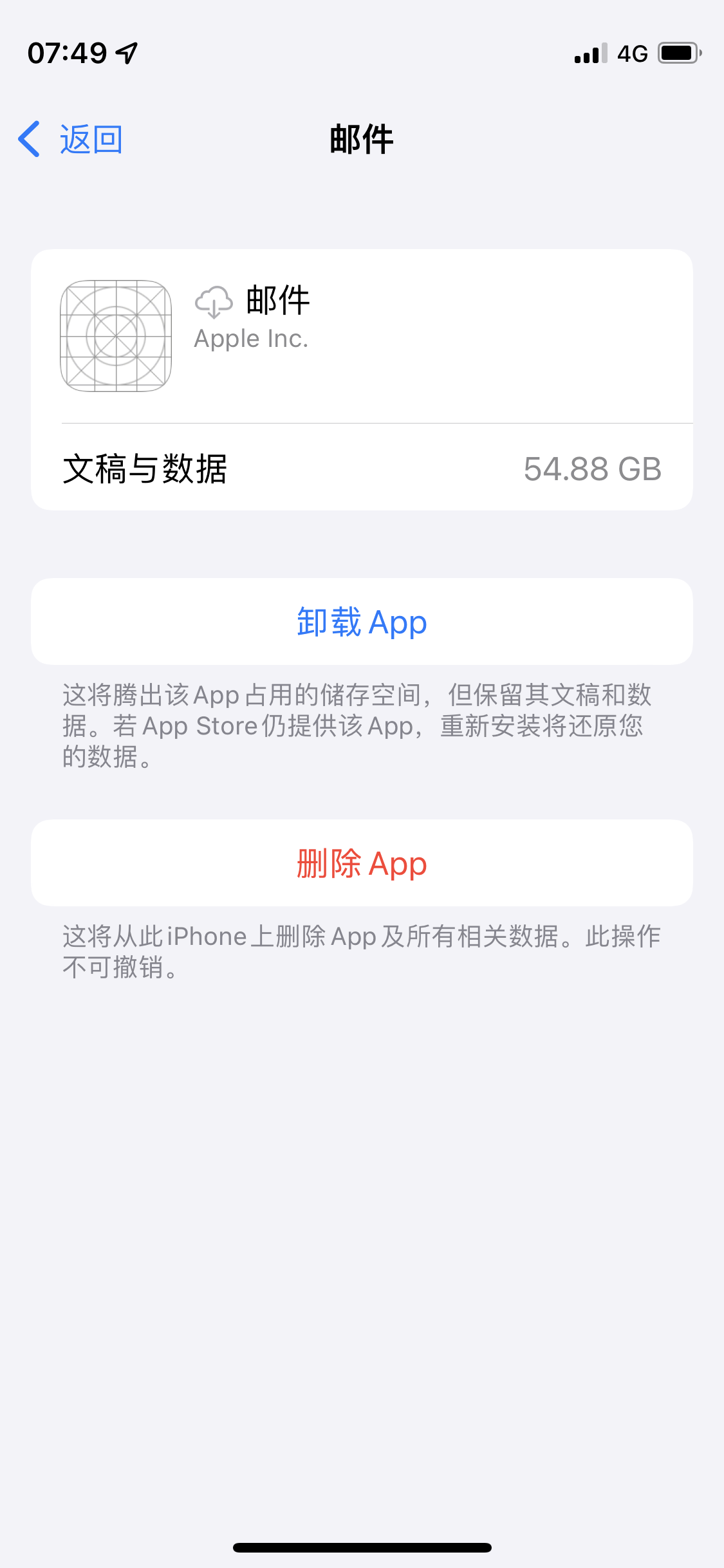 邮件app占用了手机12G的内存,删除app也不能释放,已经尝试过完全删除邮件app并等待很长时间、删除账户重新登入、重启设备、升级系统,最多只能到图二这样。想问问有什么办法清理吗?邮箱里面没有任何邮件或附件。