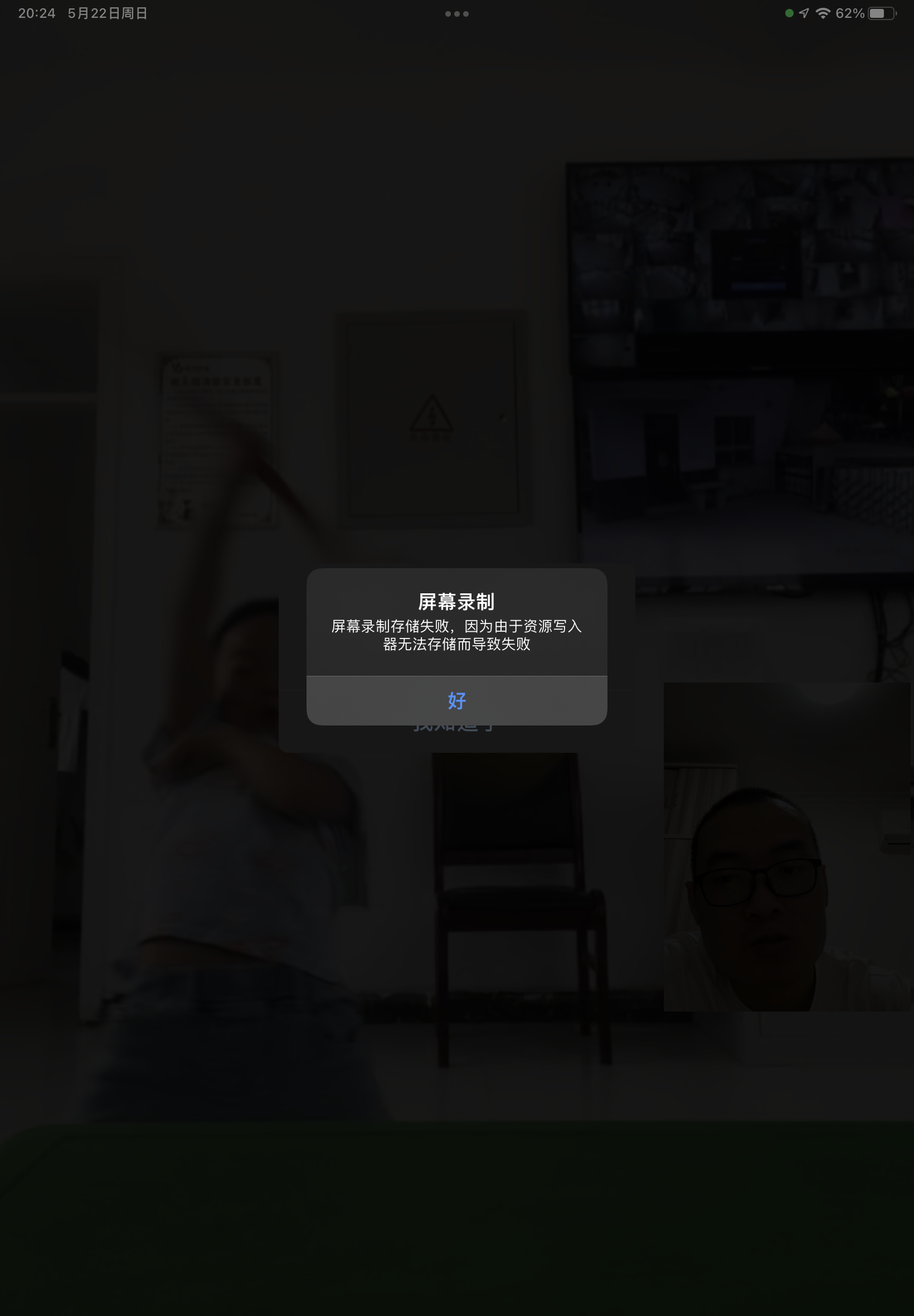 iPad Air5,15.5操作系统,5月22日录屏时发现屏幕弹窗提示资源写入器无法存储,无法录制屏幕,不知道是硬件原因还是软件原因。